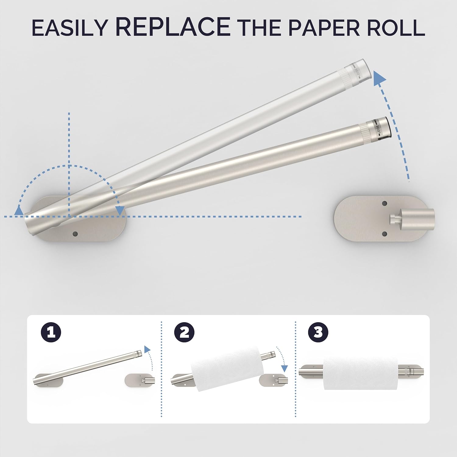 - 【HIGH QUALITY】: This paper towel holder is constructed of high-quality SUS 304 stainless steel, which is rust-resistant in humid environments. In addition, we utilize an easy-to-clean coating that can be restored to its original shine. This will make your bathroom look completely fresh. It is simple to maintain and clean; simply wipe it down with a dry cloth or sponge.