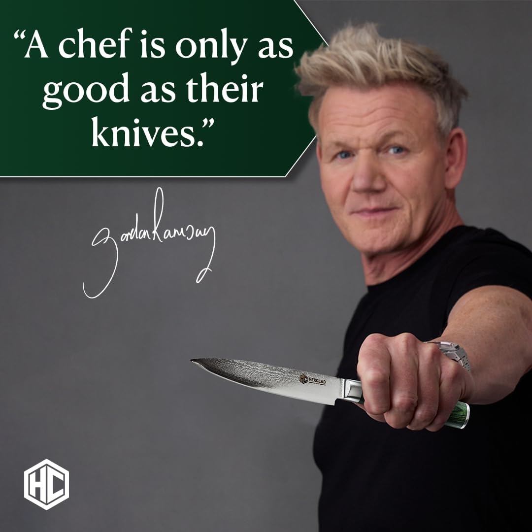 - 67 layers of Damascus steel for a harder blade that stays sharper longer with an ergonomic Pakkawood handle for precision and control. Made utilizing the 3-step Honbazuke method β an advanced heat treatment to achieve a combination of hardness and flexibility that creates an exceptional 12-degree cutting edge.