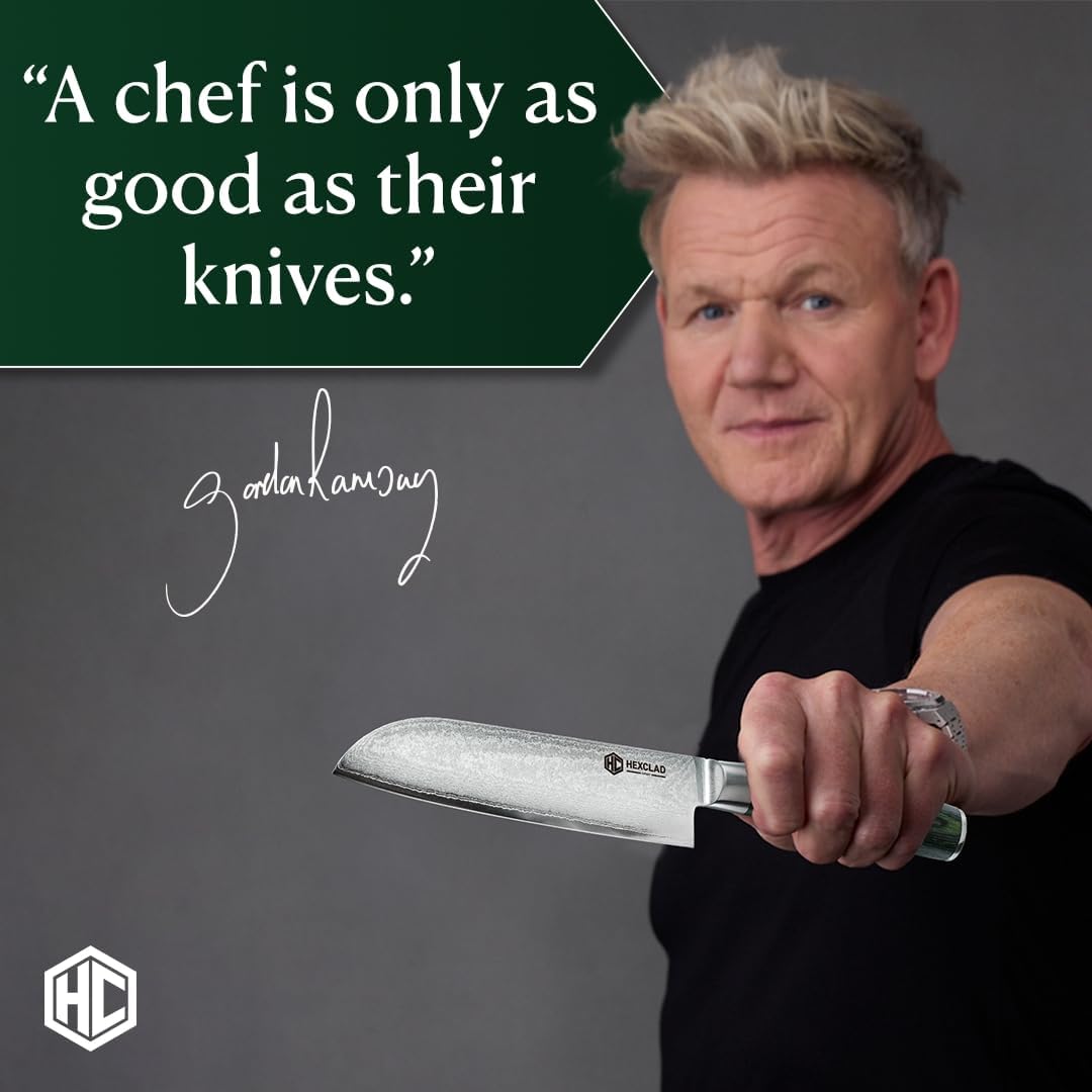 HexClad Santoku Knife, 7-Inch Japanese Damascus Stainless Steel Blade, Pakkawood Handle