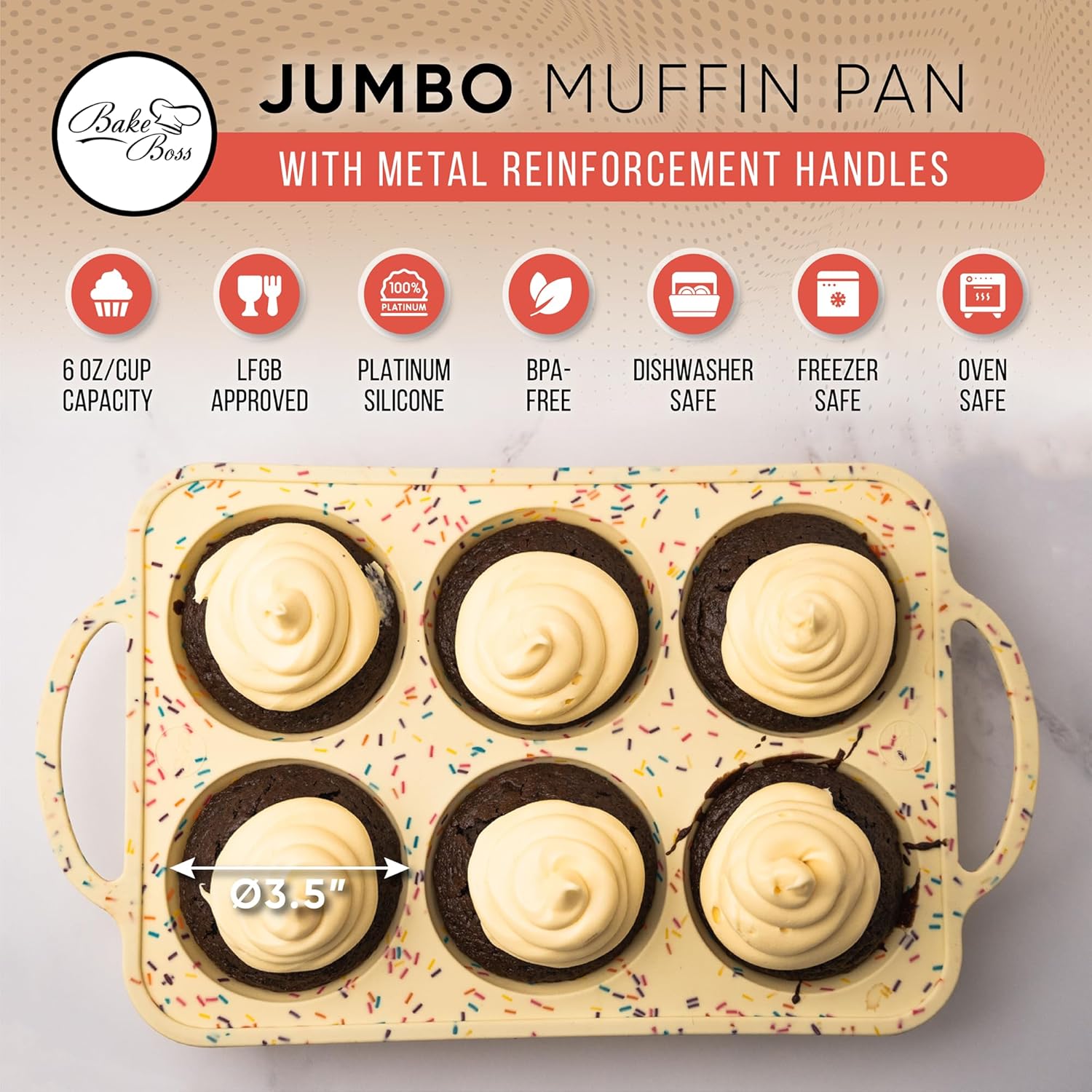 Confetti Silicone Jumbo Muffin Pan 6 Cup–Non-Stick Cupcake Pans for Baking, Heavy-Duty Large Silicone Muffin Pans for Baking, BPA-Free, Easy-Release, Oven & Dishwasher Safe