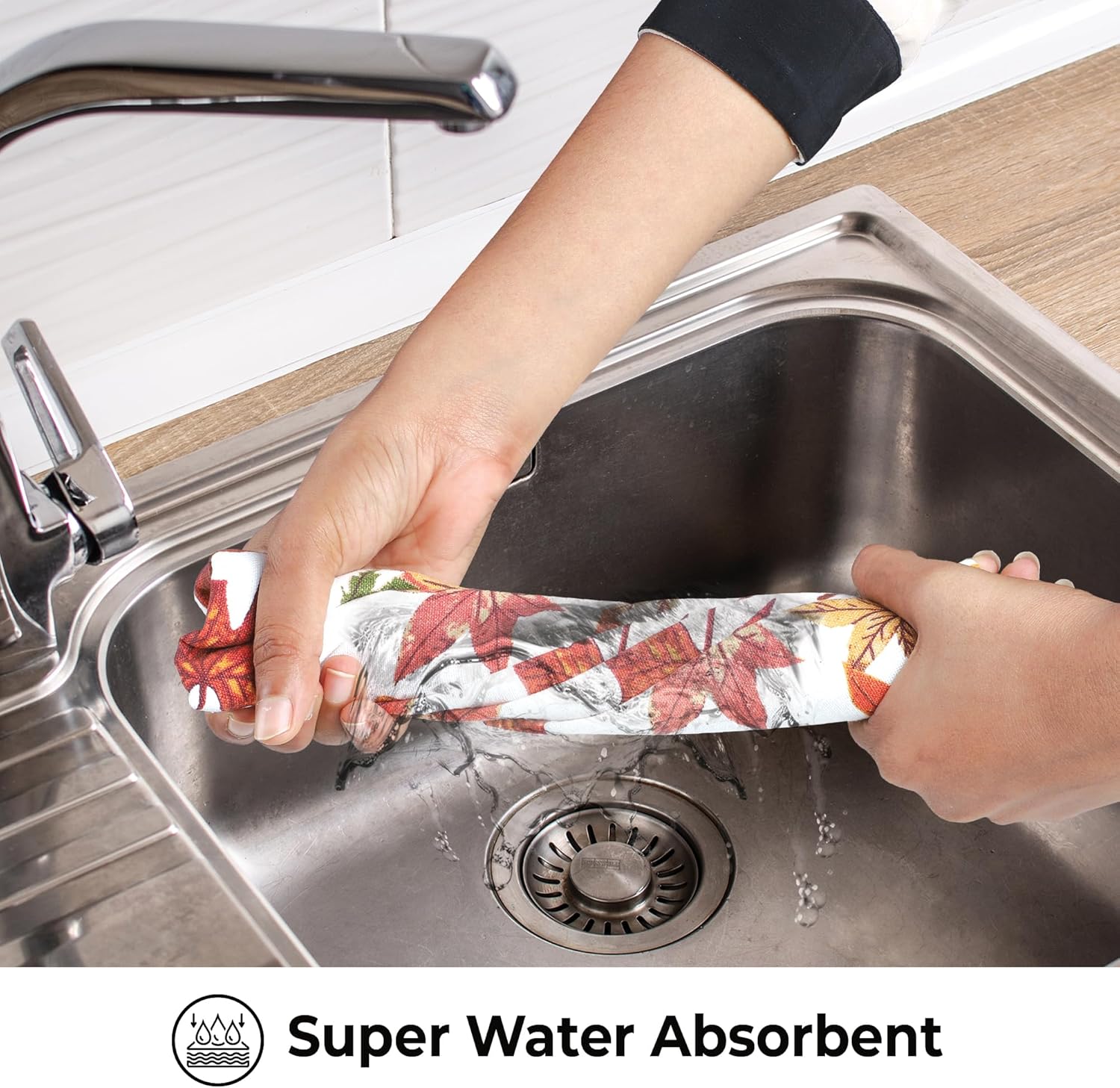 Urban Villa Fall Kitchen Towels Harvest Leaves Print Dish Towels Set of 6 20" X30” 100% Cotton Highly Absorbent Quick Drying Dish Cloths & Dish Towels Thanks Giving Tea Towels with Hanging Loop