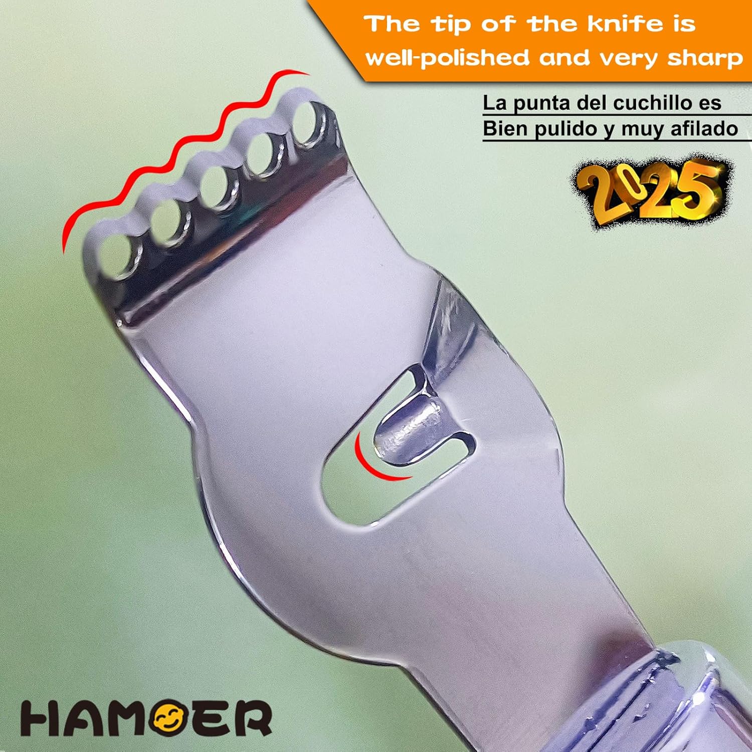 - 2-In-1 Function - This zester‘s 5 ultra-sharp holes easily remove the outer layer of the skin of citrus fruits, creating fine lemon, orange or lime zest to add texture and flavor to food. A channel knife makes it easy to create strips or twisted strips of citrus zest for garnishes for cocktails or to add beauty and interest to food.