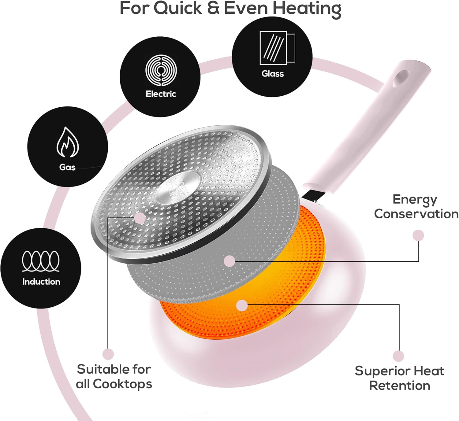 - HARBORING A CULINARY HAVEN – Explore new recipes and savor the delectable aroma, with the impeccably fabricated, nonstick even-heat distributed frying pans, ideal for all types of cook-tops, be it electric or ceramic.