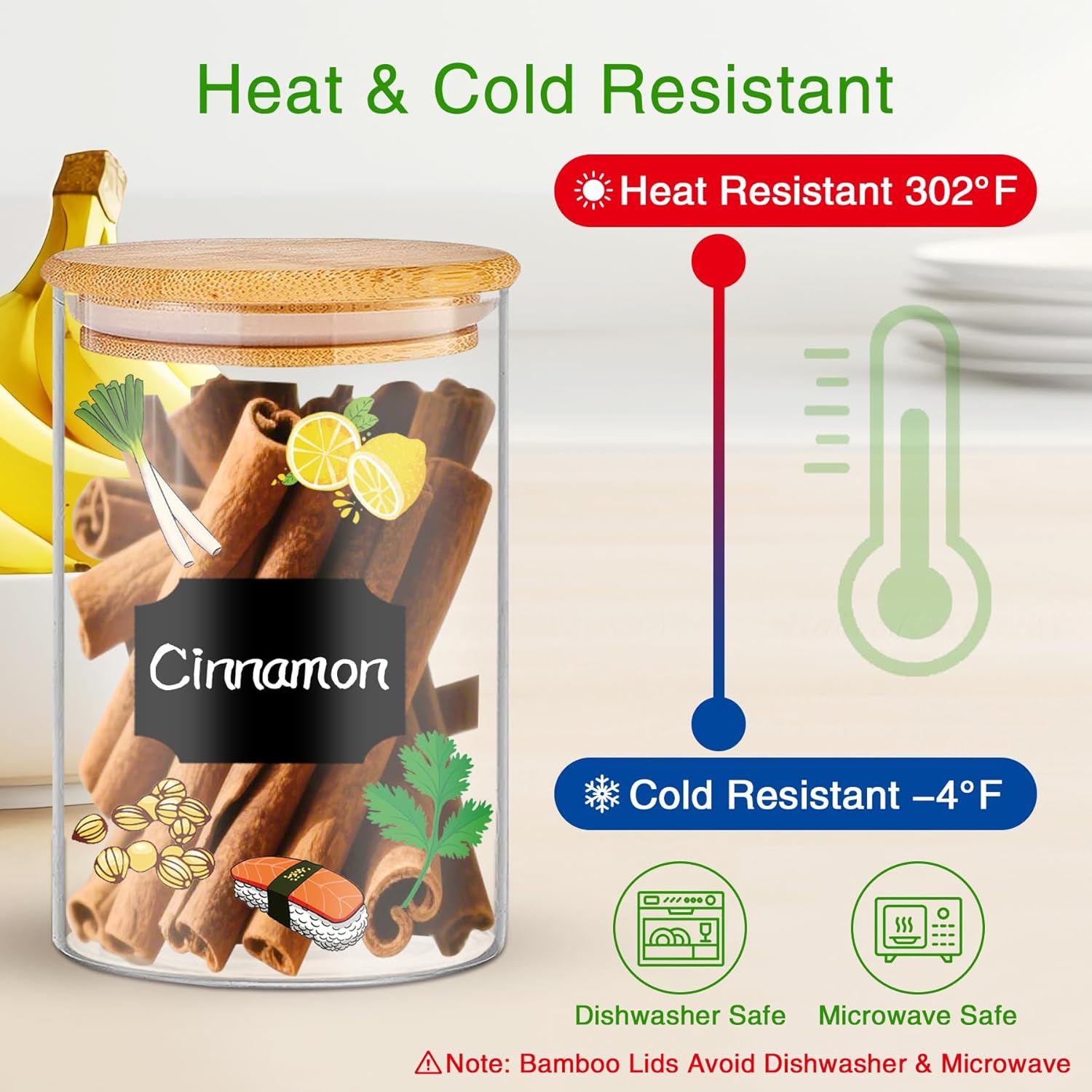 - 【Ultra-Durable】Built with borosilicate glass, the glass pantry storage containers set with airtight bamboo lids withstand -4°F to 302°F without cracking. Designed for daily use, these durable food jars & canisters retain integrity through all temperature changes.