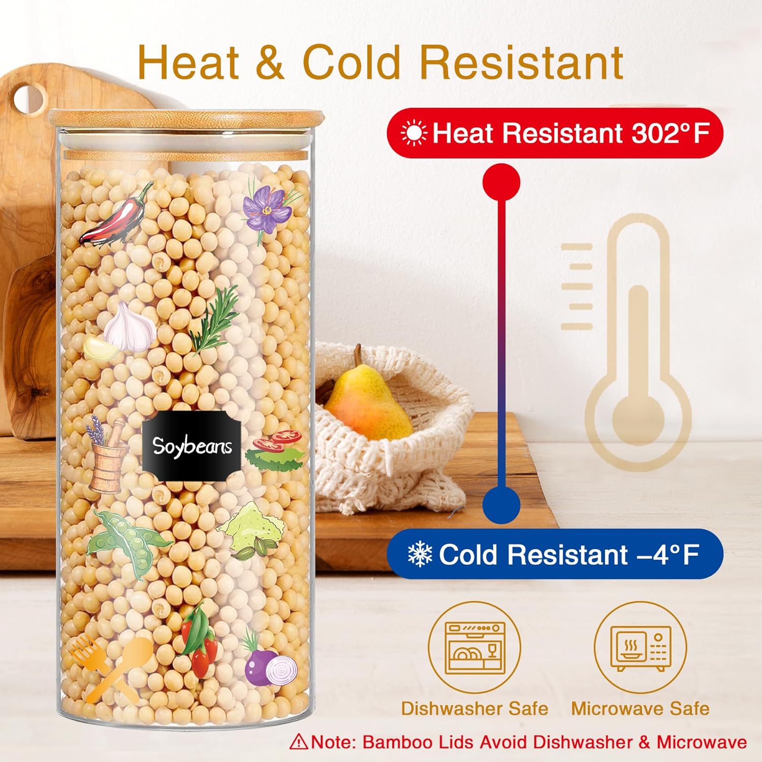 - 【Label & Stack System】Stay perfectly organized with 58 colorful labels included with these kitchen jars. The uniform glass pantry storage containers set with airtight bamboo lids stack neatly to maximize space - ideal for small kitchens storing flour, nuts or pet treats.