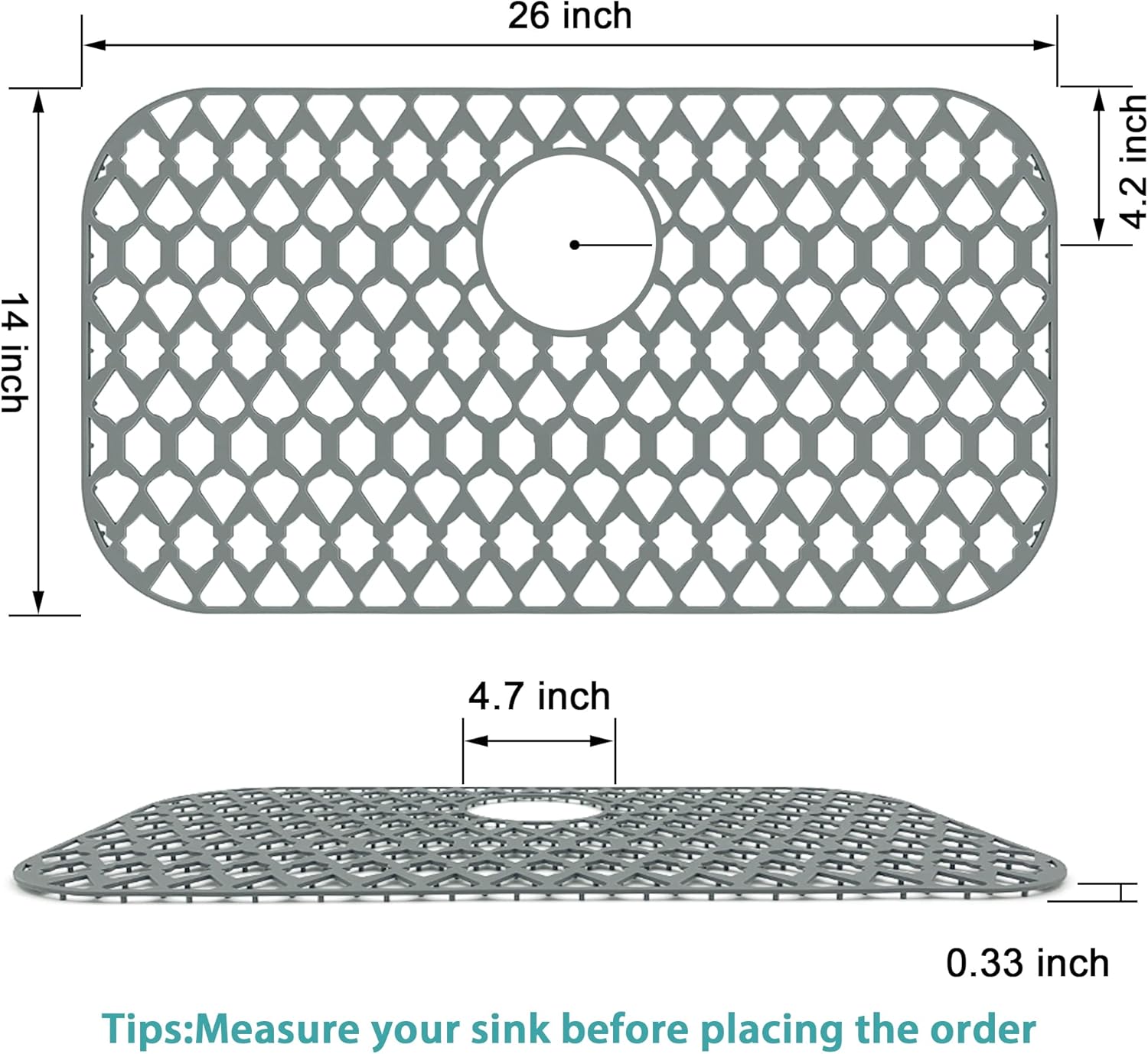 - Large Size & Flexiable - The size of our silicone sink mat is 26 ×14 inches. The silicone sink mat is flexiable that easy to fit the bottom of the kitchen sink. The silicone sink mat not only can be sink protectors for kitchen sink, but also can be a drying mat or dish mat. It is an essential item for the daily cleaning of the kitchen.