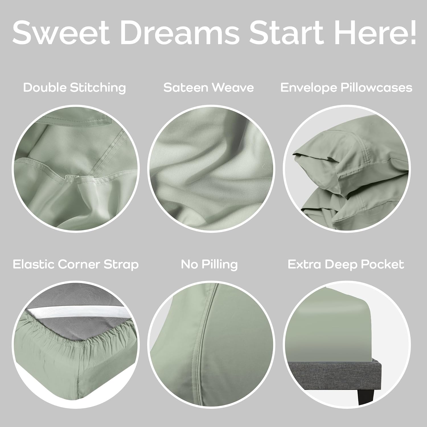 100% Viscose from Bamboo Sheets Full Size, Super Soft Bedding Set, 4 PC Cooling Sheets for Hot Sleepers, Vegan Silk Moisture Wicking, Organically Grown Bedsheet, Sage - 54" x 75"
