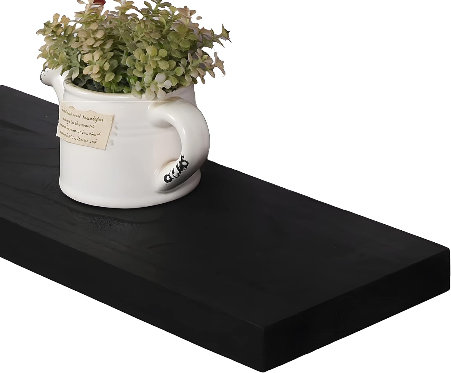 Wood Floating Shelves for Wall, Wooden Wall Shelves for Bedroom, Wall Mounted Shelves for Living Room, Set of 4 Black 24 Inch