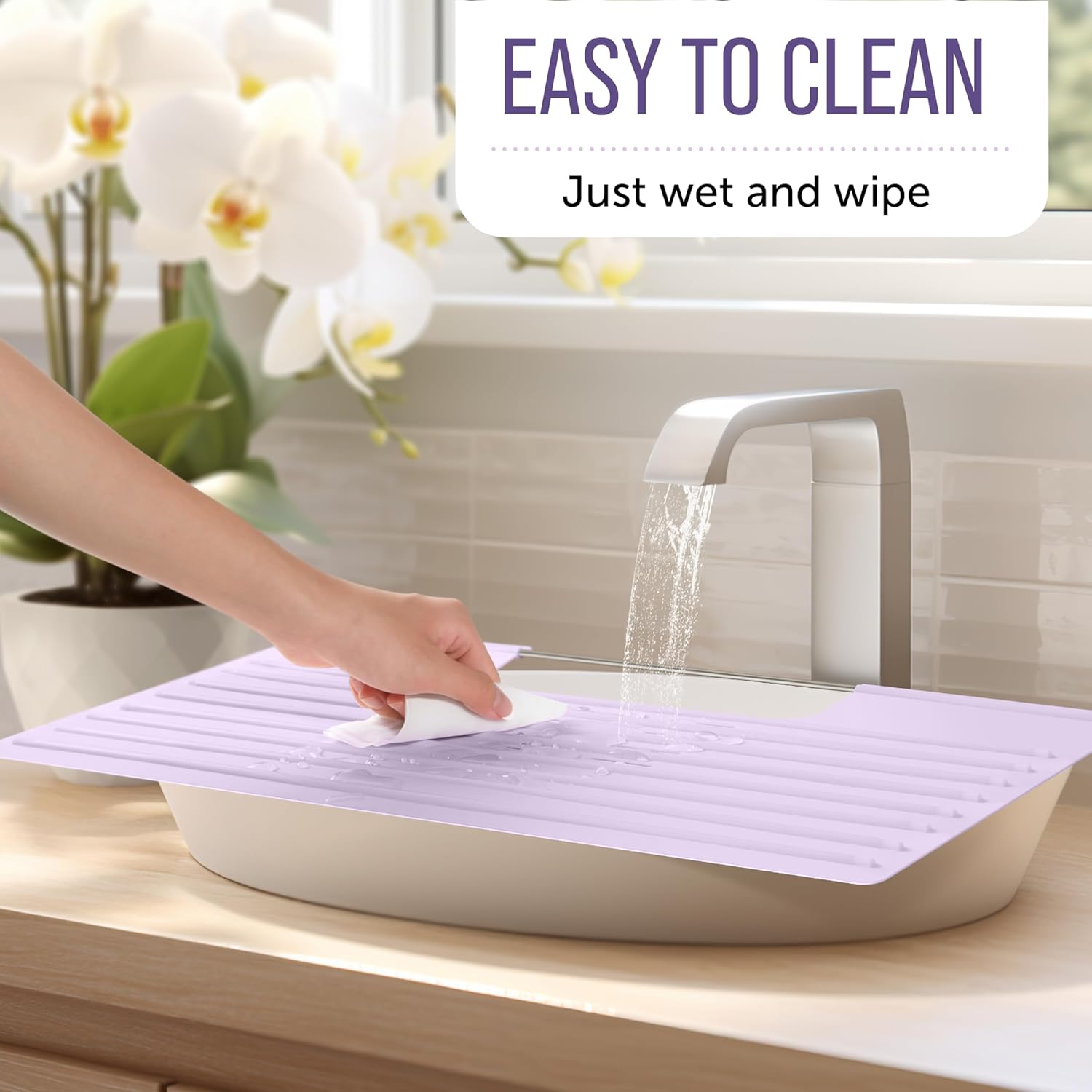 - Transform Your Space: Enhance your bathroom with the Maplefield Lavender Foldable Sink Cover, creating extra counter space with its innovative design. This over sink makeup mat transforms your small bathroom sink into a functional vanity area effortlessly
