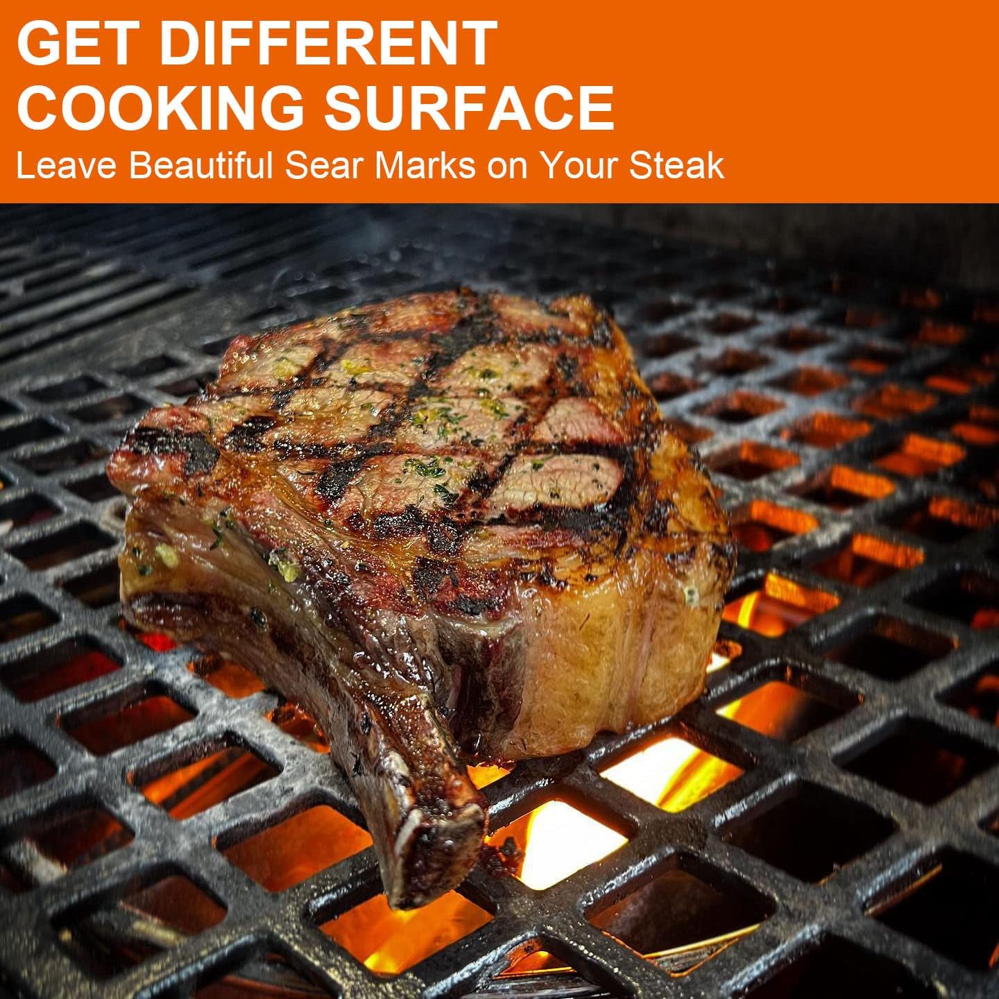 - 【Great Replacement】The dual sided searing grate are made of porcelain-enameled cast iron. The heavy duty materials extend these item longer service life and gaurant to feature these merits, heat evenly, anti-rust and heat resistence.