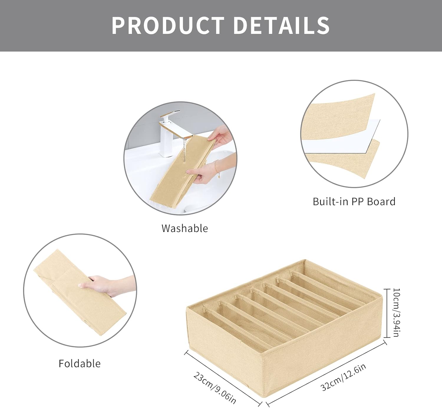 - PREMIUM QUALITY MATERIAL: The clothes organizer for folded clothes are made of PBT fabric, which is moisture-proof and very durable. The square boards are made of PP (Polypropylene), which is high heat-proof, smooth and light. These drawer organizers for clothing are washable, but the fabric contains a hard PP board, so please wash them by hand instead of using the machine.