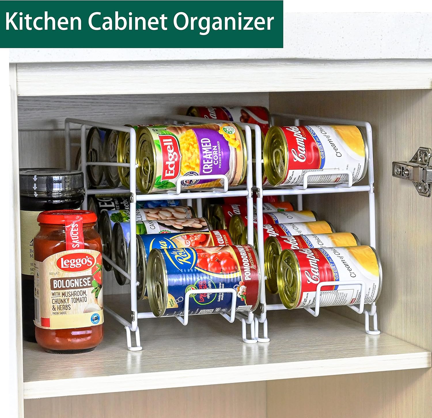 SUFAUY Soda Can Organizer Rack, Stackable Beverage Can Dispenser Holder for Pantry/Refrigerator, Set of 2, White