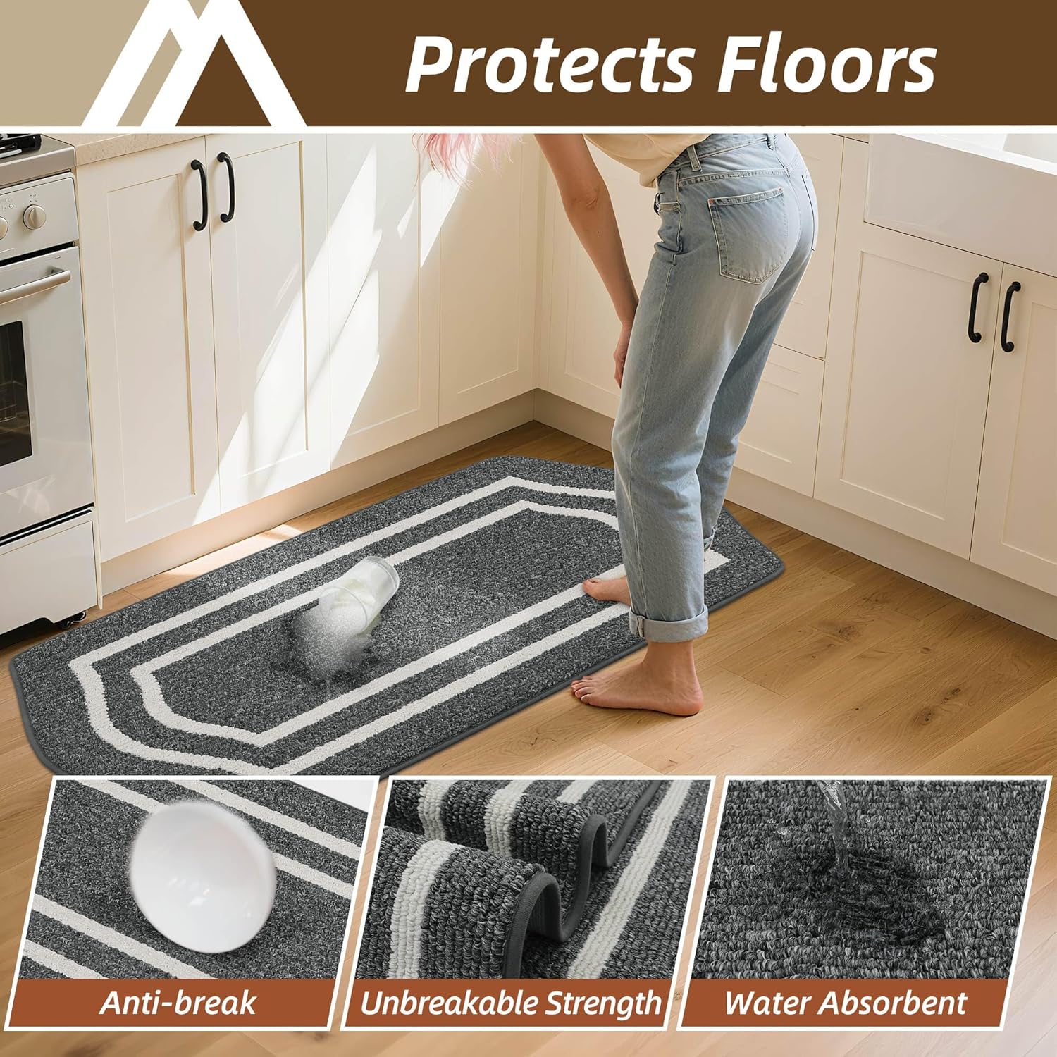 - Durable & Thick Kitchen Mats: As a rug used in high traffic cooking areas, large size kitchen rug is a great way to keep your kitchen clean and tidy. Great stain-resistant properties protect the floor from oil, dampness, sauces or food particles.Rug and mat suitable for kitchen