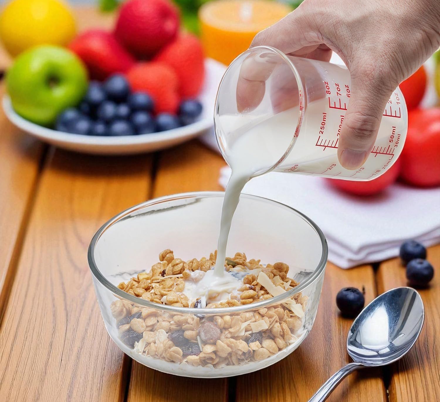 - Essential Kitchen & Bar Tool β This 1 cup glass measuring cup (8oz/250ml) with V-shaped spout is perfect for precise liquid measuring in cooking, baking, or cocktail mixing. Lightweight yet durable, itβs ideal for daily kitchen and bar use