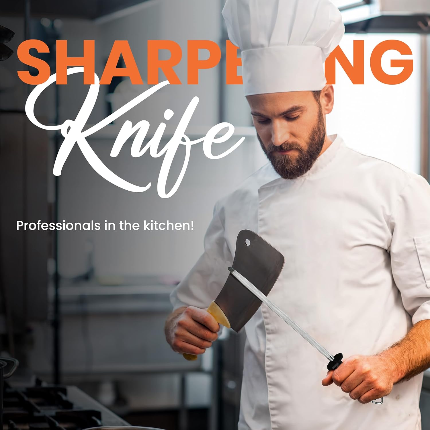 - 08-inch knife sharpening steel rod is for all types of knives, including kitchen, household, sporting and pocket knives; sharpens standard and serrated edge knives