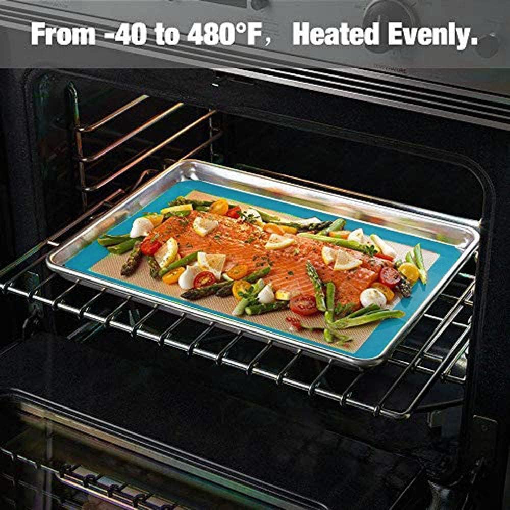 - ❤IMPRESS WITHOUT THE MESS:Tired of scrubbing and soaking? We know how time consuming cleaning baking trays can be! Ditch the parchment paper and make your nonstick baking simple, there’s no need for fats, oils, sprays or butter. Easy to clean - Toffee? Caramel? Macarons? Ditch the cleaning and keep the kitchen effortlessly gleaming. Simply wipe clean with warm soapy water, or pop them in the dishwasher after a quick sponge wipe. This well-kept chef’s secret is a must for every baker!