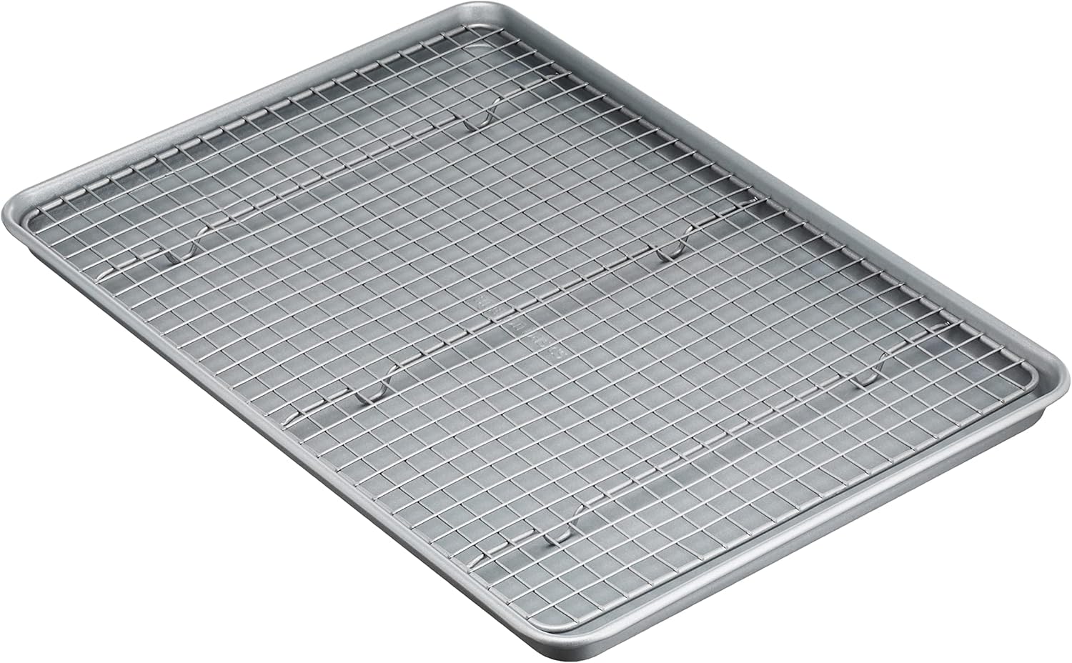 - Product dimensions: 17.7 x 12.4 x 1.1 inches (LxWxH, baking sheet); 16.7 x 11.7 inches (LxW, cooling rack)