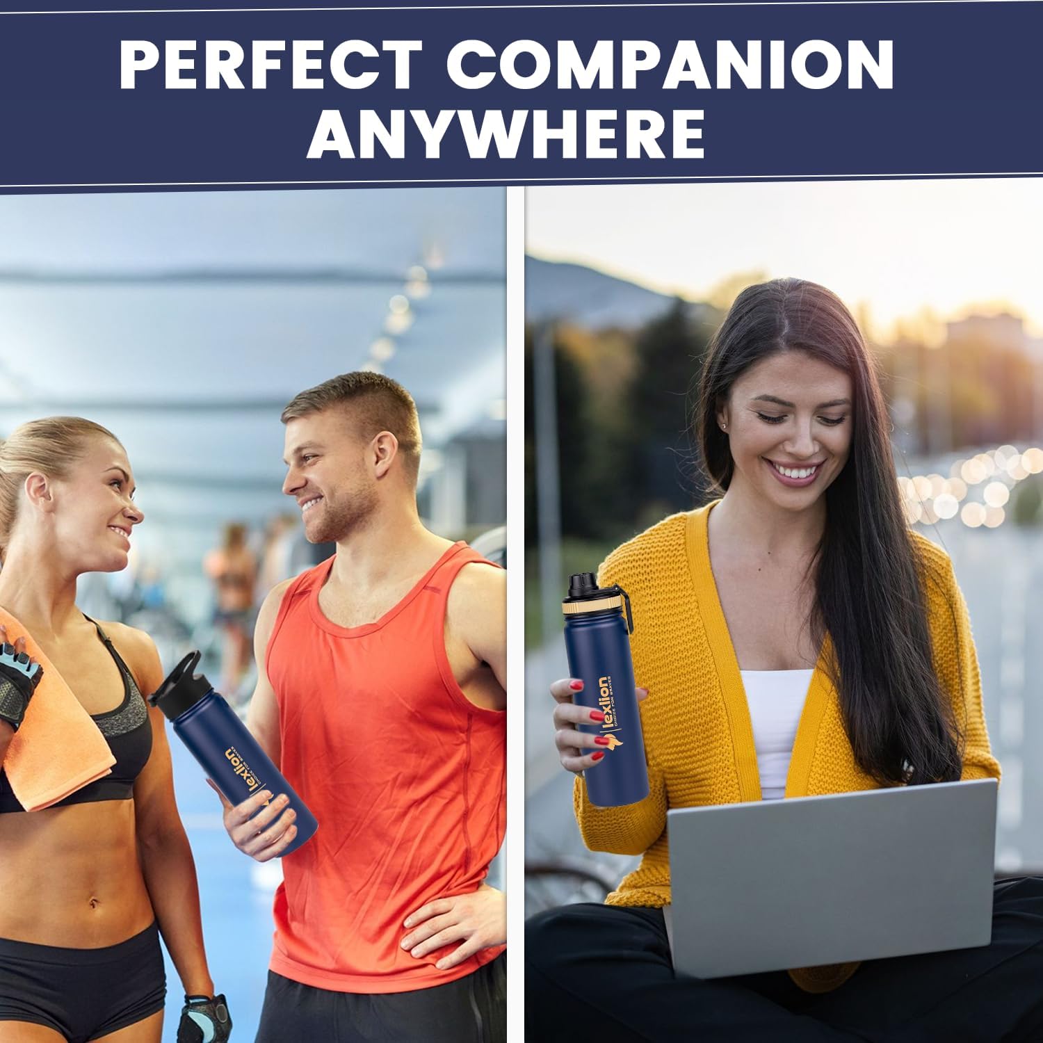 - ✅ LIDS & INFUSER/STRAINER- Lexlion water bottle 22 oz comes W/3 LIDS! a spout lid, a flip lid & and a third lid which is stainless steel lid, 100% leak-proof & dishwasher safe. It includes a newly designed 2-piece strainer stainless steel, a very convenient filter to make loose tea leaves, cold coffee brews, herbs, or fruit-infused water. Add them to the filter basket, close it & clip in the tea water bottle infuser with water. If an infuser is not needed, just remove it.