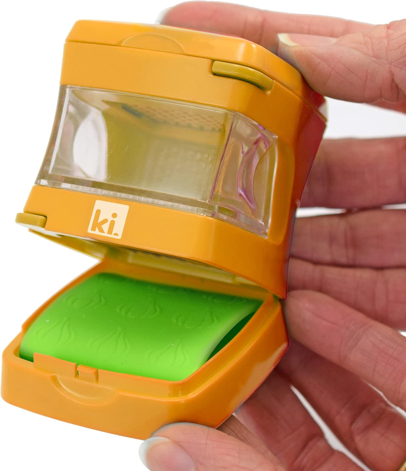 - Leaves no odour on hands; Use the silicone peeler to peel garlic, then simply add garlic in between the top and selected blade, then push down; Clear container catches crushed garlic and allows for easy transfer directly to any dish or recipe