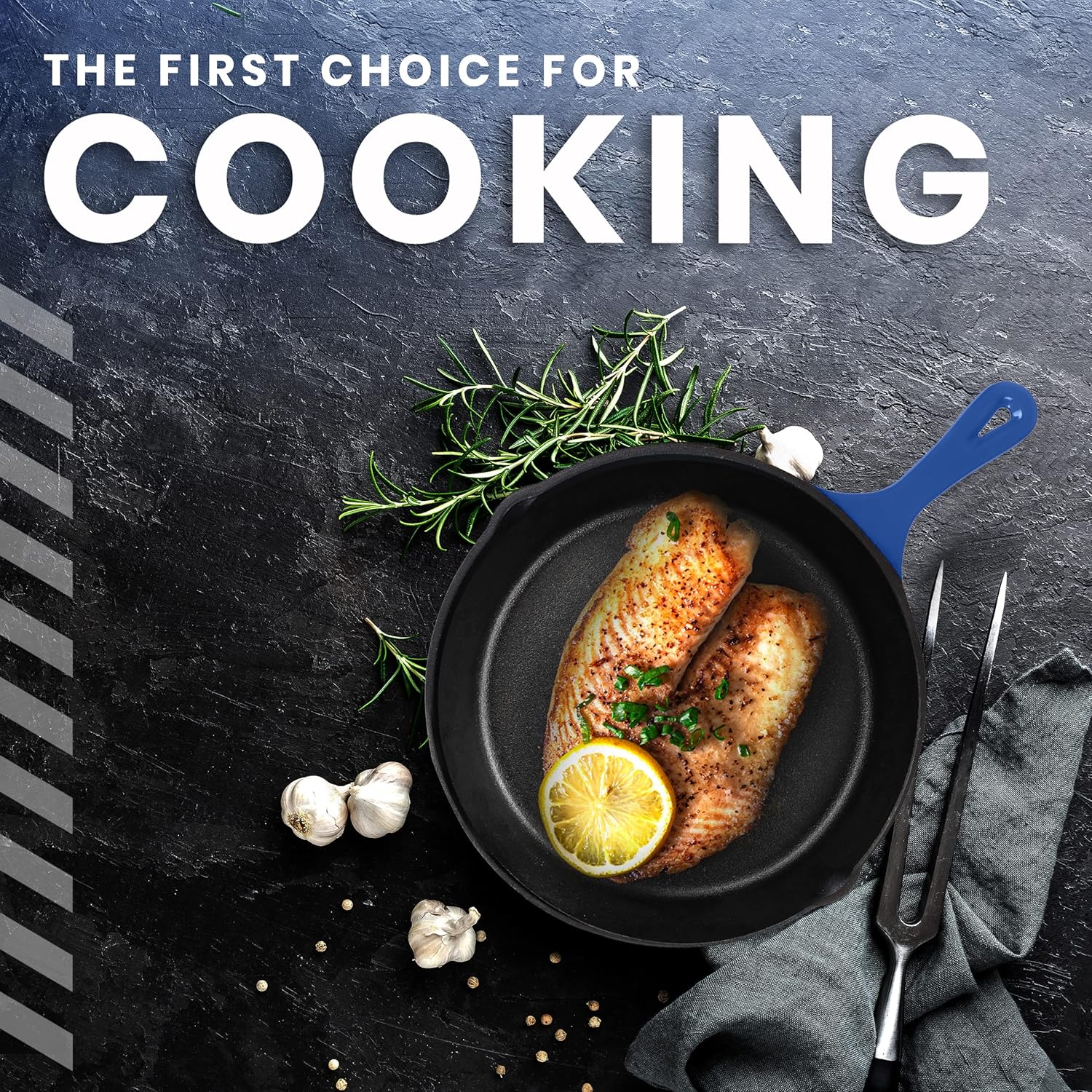 Utopia Kitchen Pre Seasoned Chefs Pan Skillet Frying Safe Grill Cookware for indoor & Outdoor Use (Blue, 8 Inch Pack of 1