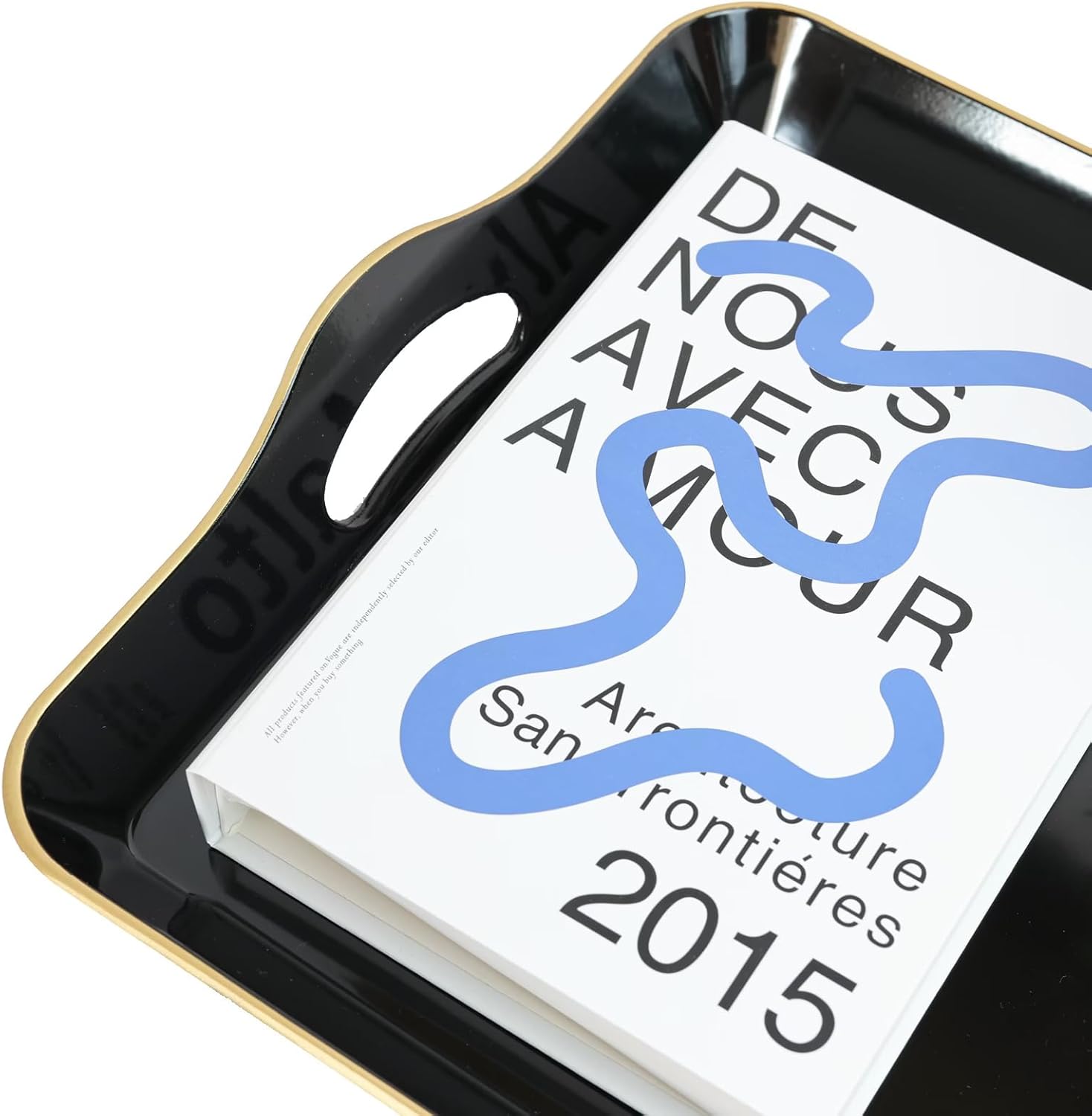 Spsyrine Large Black Serving Tray with Handles, Plastic Decorative Tray for Coffee Table, Ottoman, Bathroom, Home Decor 17.3"*11.8"*2"