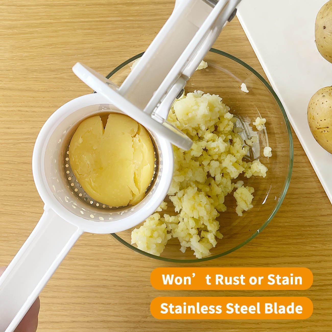 - Easy to Clean: Potato Press can be easily disassembled and any food residue can be washed off with warm water. The blades can be placed in the top rack of the dishwasher for easy maintenance.