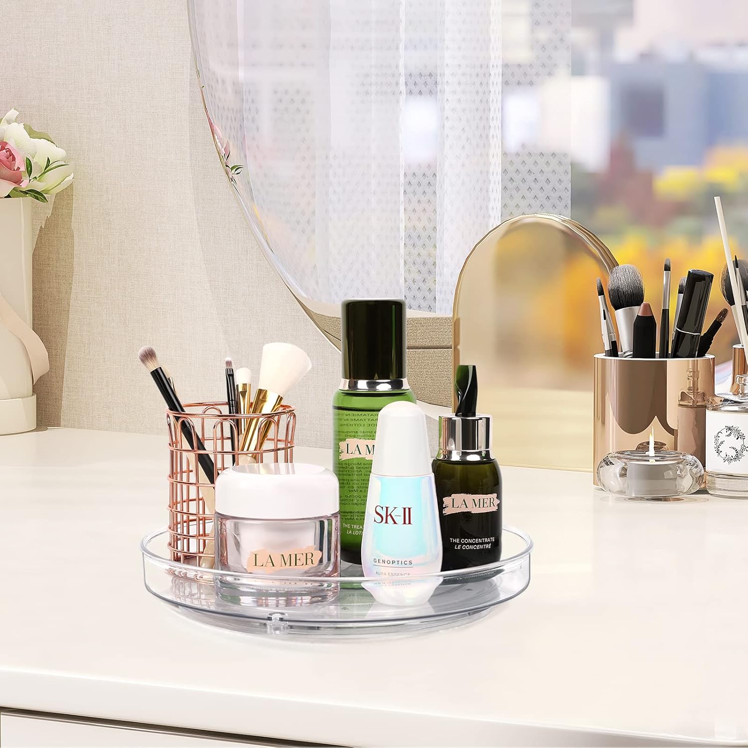 - VISIBLE CLEAR & STYLISH DESIGN - The visible design of the rotating organizer allows you to see all your items at a glance and find what you are looking for without pulling them out. And the storage looks clear and stylish, will perfectly match with the decor of your home