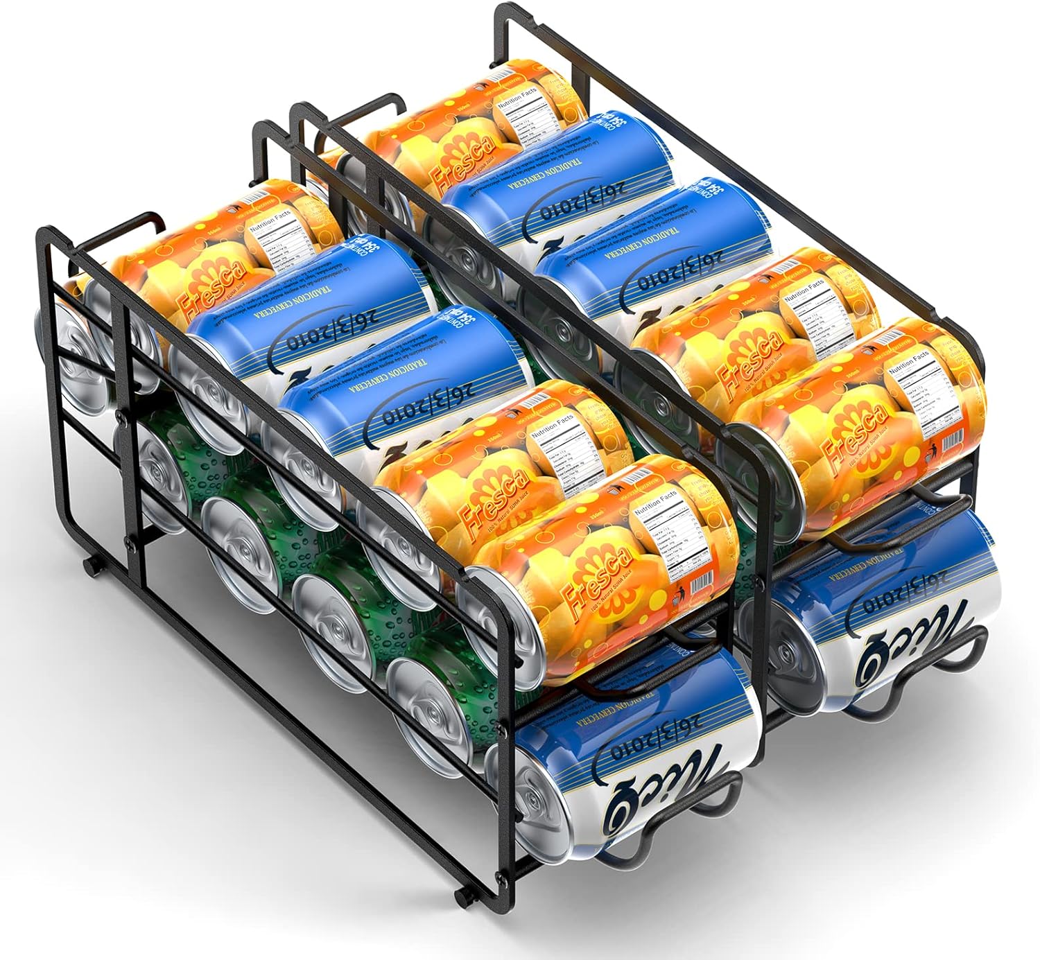 Soda Can Organizer Storage Rack, 2 Pack Stackable Beverage Soda Can Dispenser Organizer Holder for Refrigerator, Cabinet, Pantry (Black)