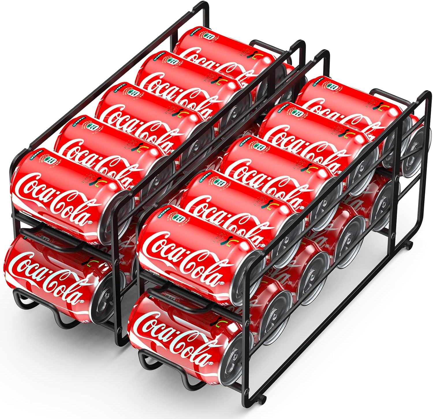 - 【Sturdy & Stable Construction】The soda can dispenser rack is made of strong alloy steel with a powder-coated surface, which makes this can organizer sturdy and rust-resistant. The construction remains strong and stable when these 2 pack soda can organizer stacked together