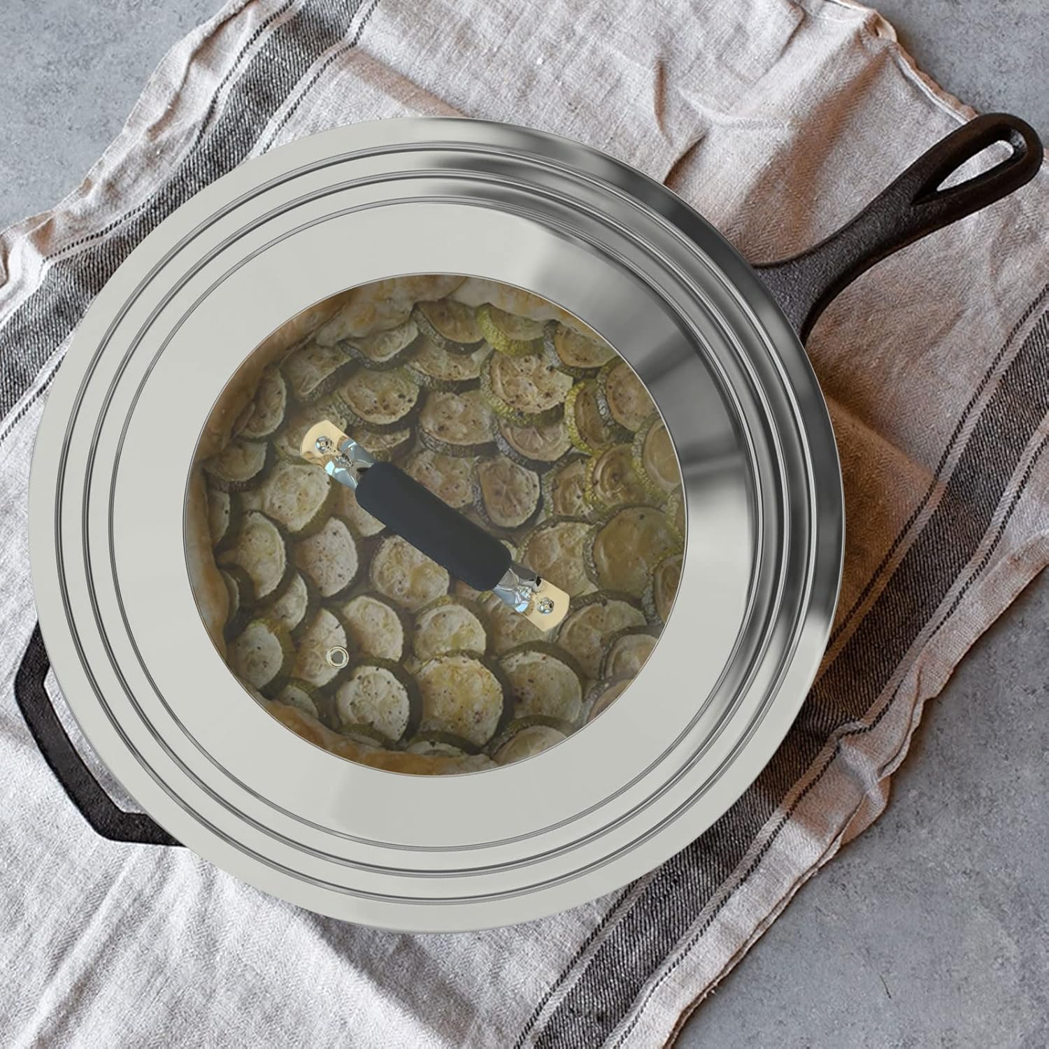 - Heavy-duty Pan Cover: Made from quality 304 stainless steel & sturdy tempered glass, strong enough, safe to use with high temperature.