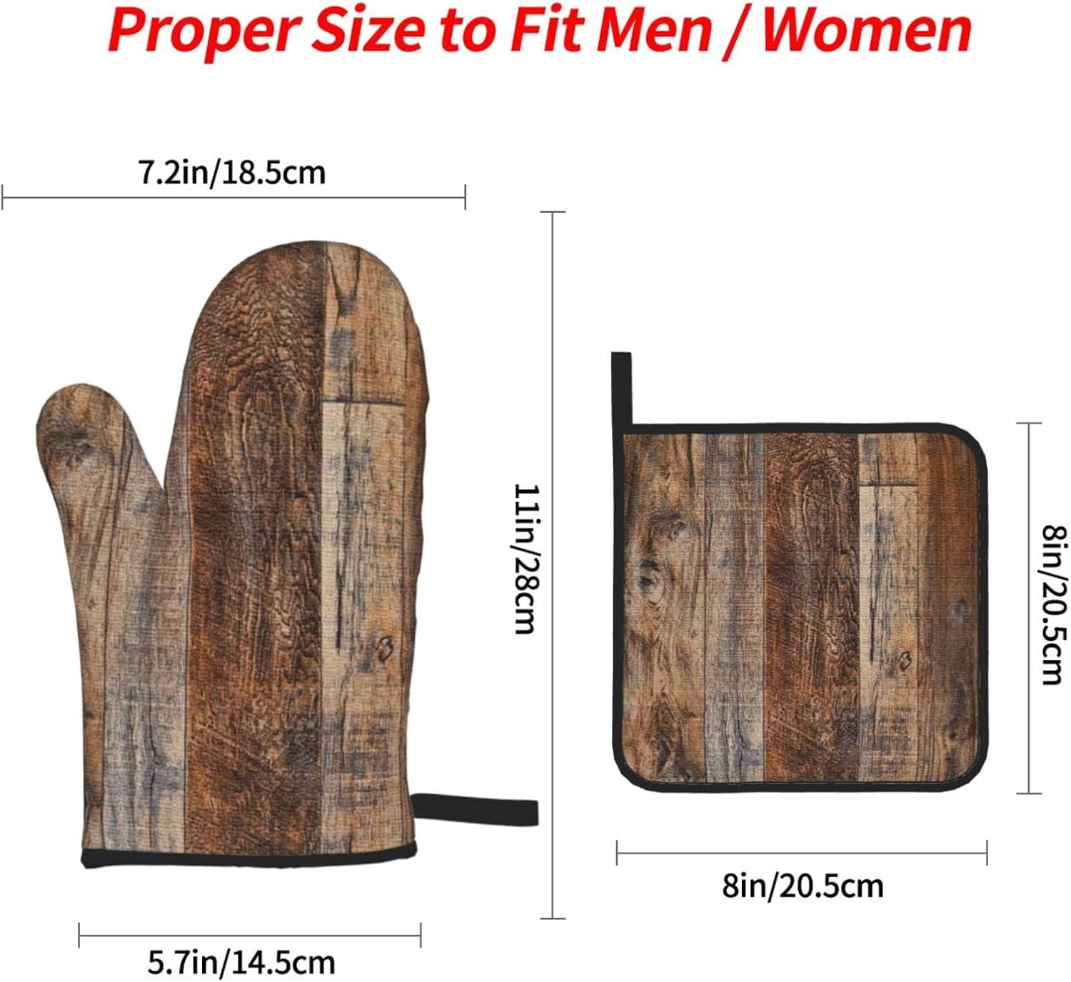 Oven Mitts and Pot Holders Sets of 4,Vintage Brown Wood Splicing Pattern,Oven Mitts Heat Resistant Oven Gloves Set Potholders for Kitchen Baking Grilling