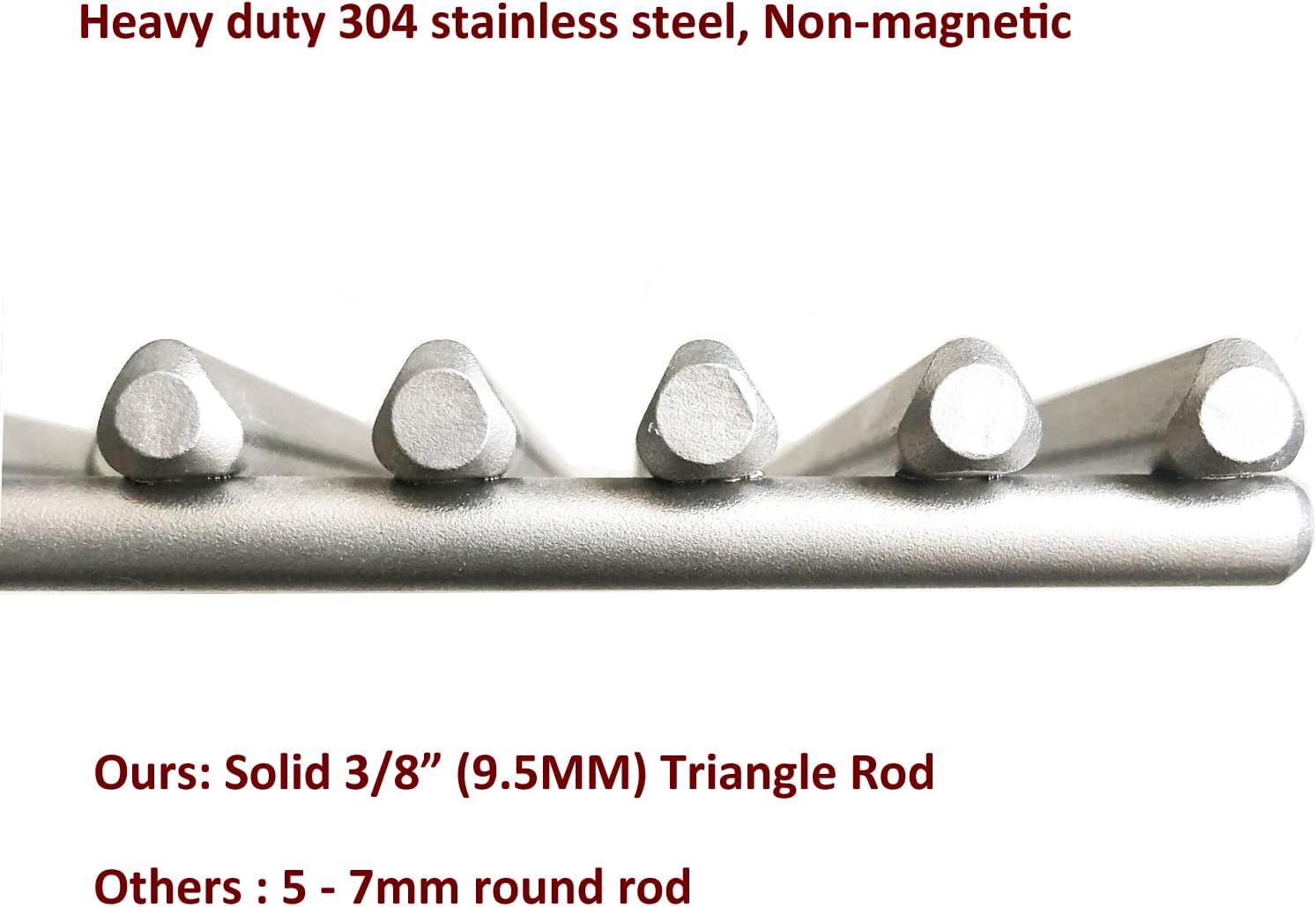 - [Triangle Rod] - Upgraded 3/8" 9.5MM Triangle Rod 304 stainless steel material, with special surface treatment, it has cast stainless steel texture, and electropolished, has a shining smooth surface, easy to clean. It's great for an upgrading your weber genesis grill grates.