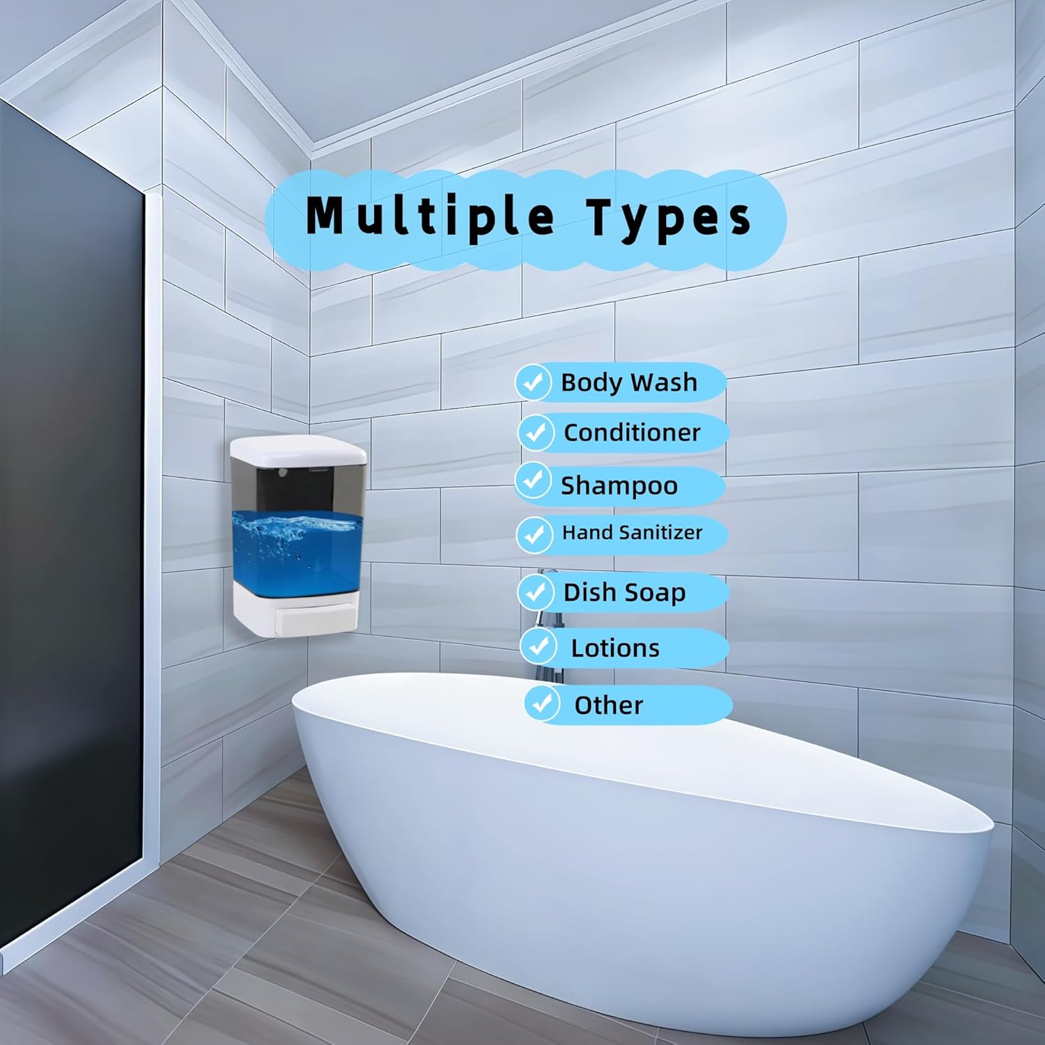 - Commercial Soap Dispenser---Soap dispenser for commercial and public entities, offices, restaurants, healthcare facilities, schools, hospitals. Ideal to use with soap, hand sanitizer, shampoo, conditioner, body wash, shower gel and lotions, Liquid soap, body lotion, cleaner and so on.