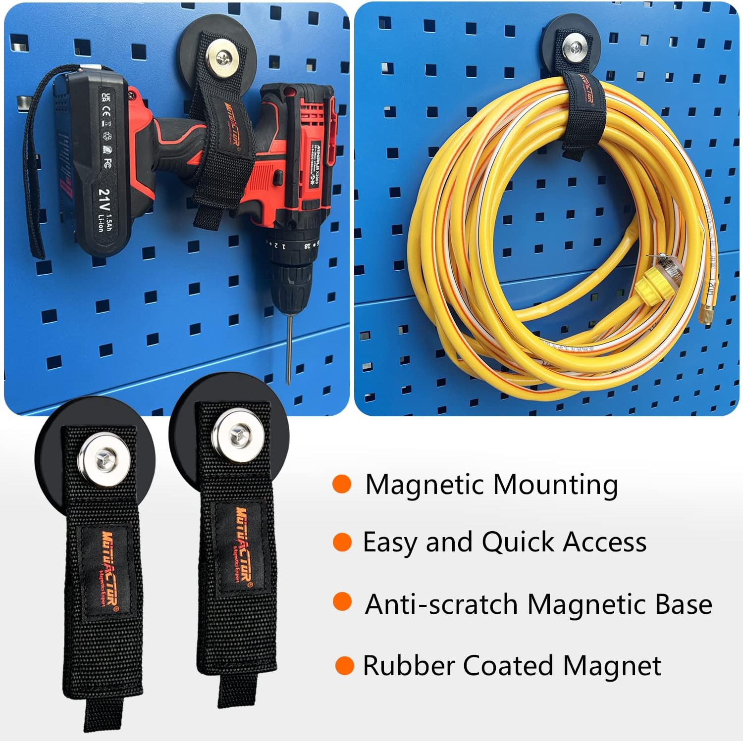 - [Strong Magnetic Mounting Hooks] Save the hassle of drilling holes and simply attach handy magnetic hooks to the side of your toolbox, tool chest, to keep water pipes, garage tools, and other garden hose tools in a place (easily accessible)