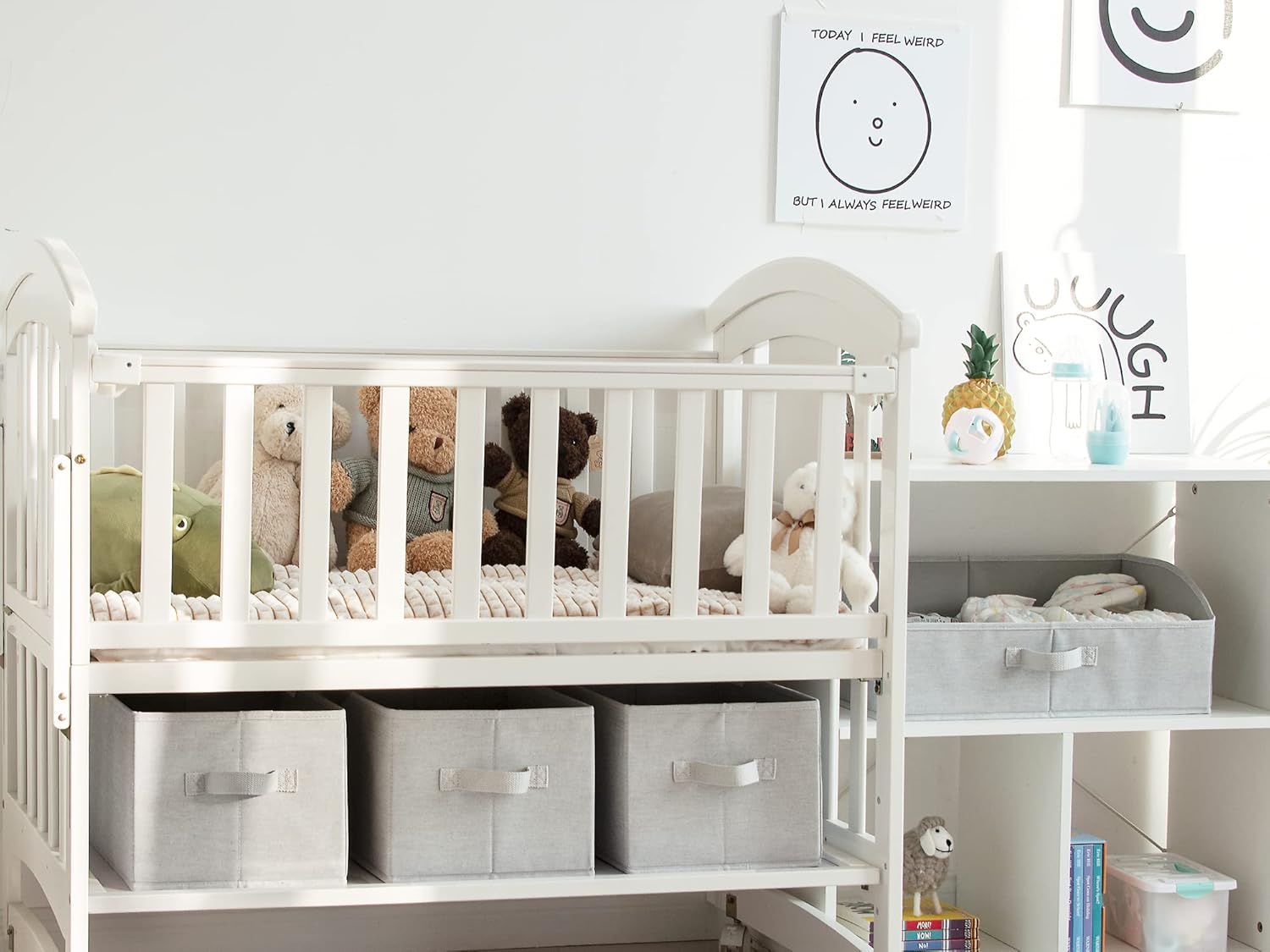 - The natural fiber and the inserted heavy-duty boards allow the storage bins to hold a weight of up to 30 pounds.