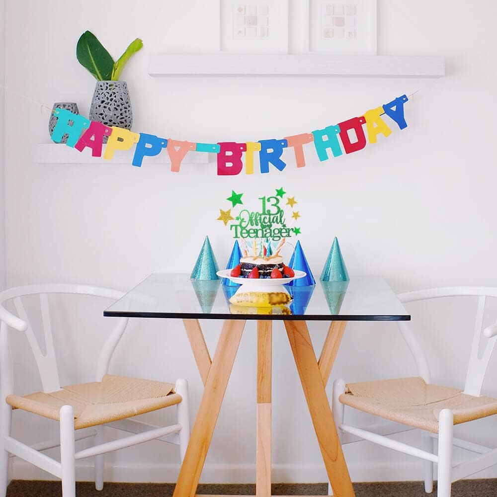 Glittery 13 Ofiicial Teenager Cake Topper with Star,13th Happy Birthday Cake Topper Party Decorations Party Supplies for Boys Girls Green Gold