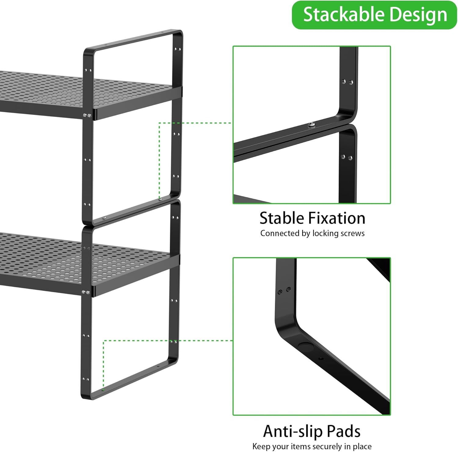 - Stackable Shelves: You can stack one shelf on top of another to creat multiple levels of storage space. You can choose 1, 2 or 3 tier shelving unit to meet your needs. The shelf stand is perfect for kitchen cabinets, pantries, countertops, under the sink or anywhere you need extra space to maximize storage and organization