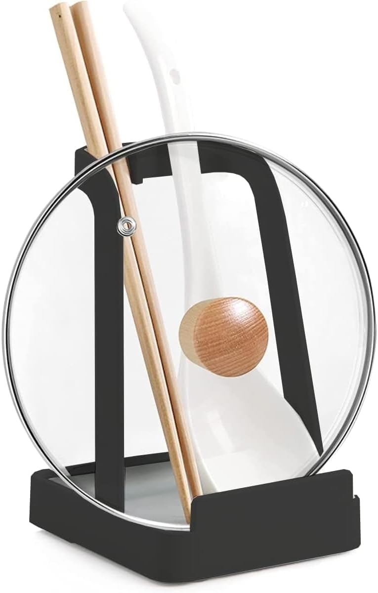- Durable & Stable - Made from premium steel, this cooking spoon holder for kitchen counter supports heavy lids with ease. Non-slip base for secure use—style meets strength