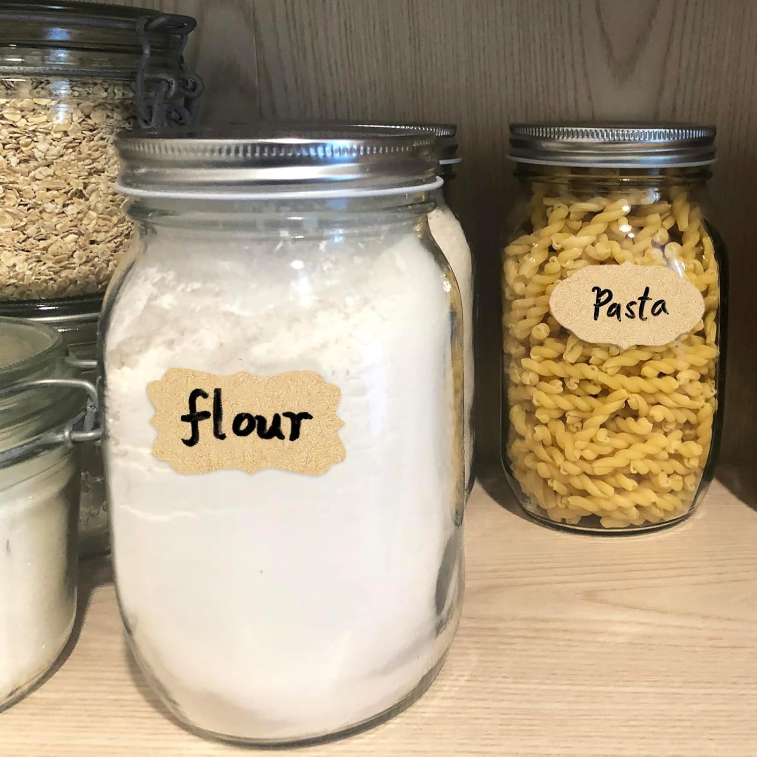 300 Pcs Gift Tag Name Labels Stickers, Kraft Blank Self-Adhesive Jar Labels for Storage Bins Essential Oil Spice Bottle Cosmetic Decoration Food Containers, Mason Labels Craft Presents Stickers