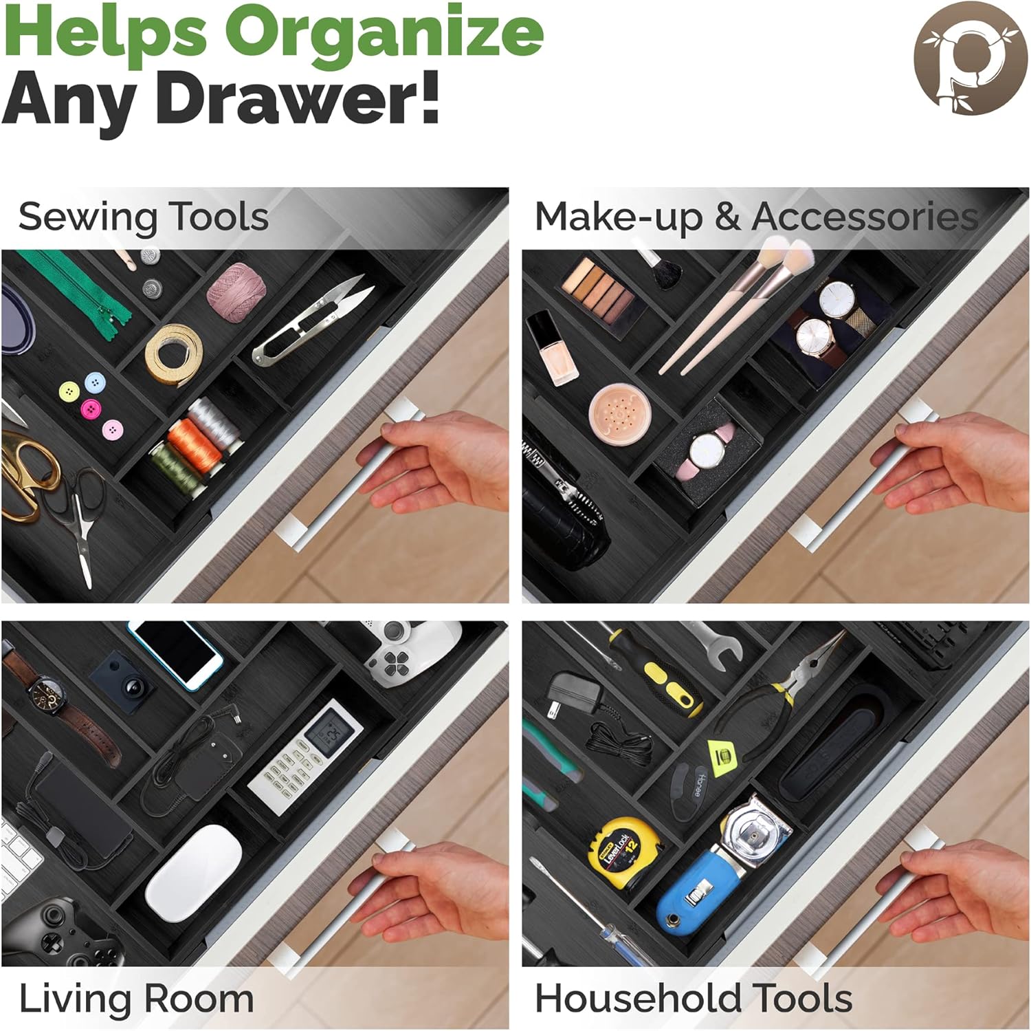 - SUPERIOR DESIGN SOLUTIONS: The only bamboo drawer organizer that offers all-in-one features: 100% bamboo (even the base), No Toxic MDF, Slip-resistant, Extra Depth, Strong & Durable Construction. This is undoubtedly the best drawer organizer available and our reviews are the testament of the quality.