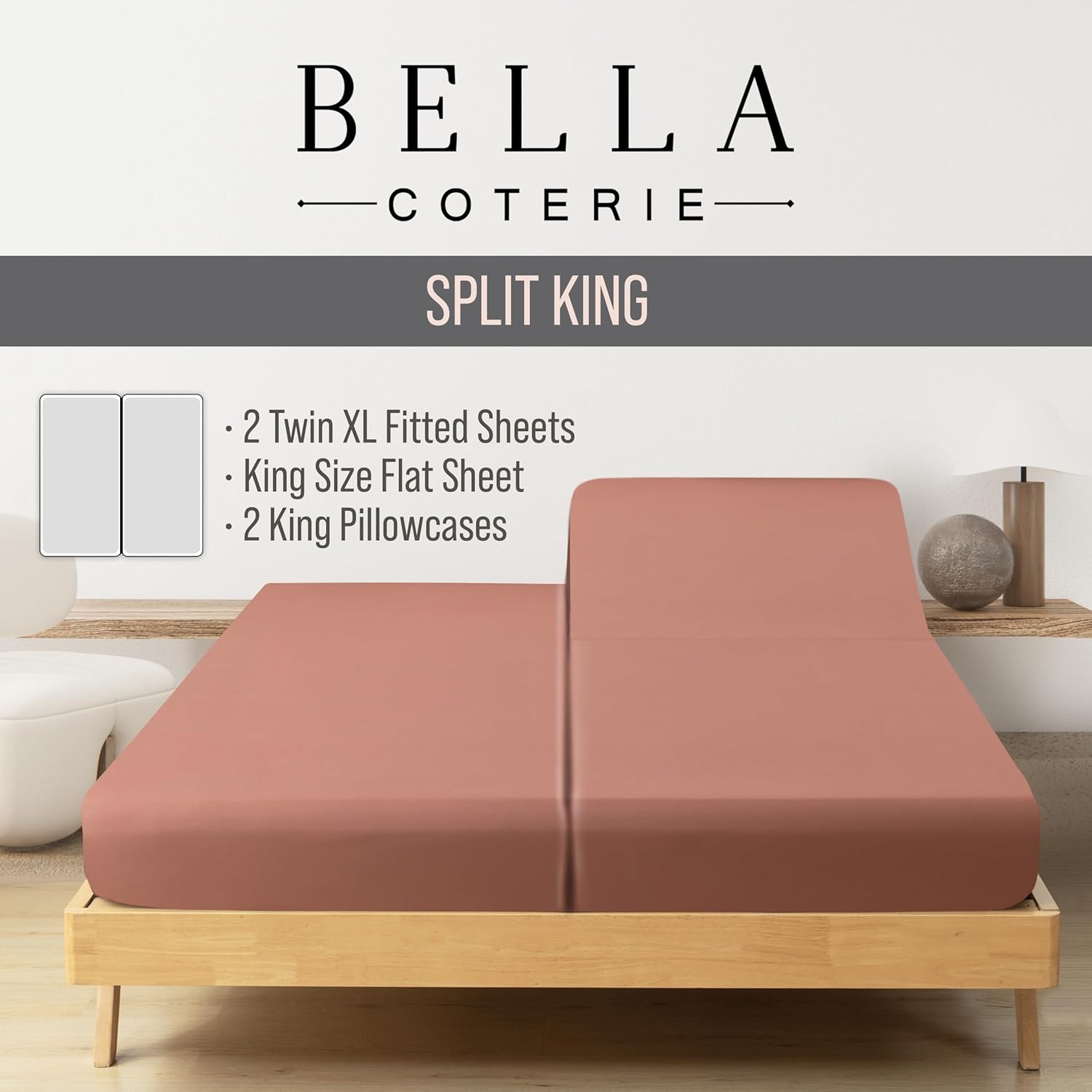 Bella Coterie Luxury Bamboo Viscose Split King Size Sheet Set | 100% Organically Grown | Ultra Soft | Cooling for Hot Sleepers | 18" Deep Pocket [Raisin]