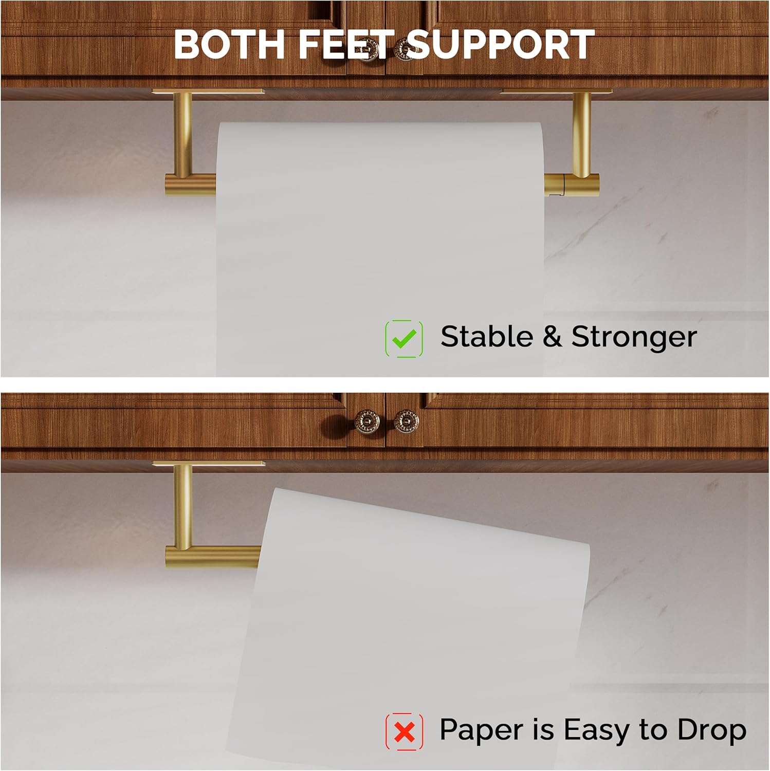 Paper Towel Holder Under Cabinet, Self Adhesive or Wall Mounted SUS304 Stainless Steel Paper Towel Holder for Kitchen, Bathroom, Farmhouse, Barbecue and Laundry (Brushed Gold)