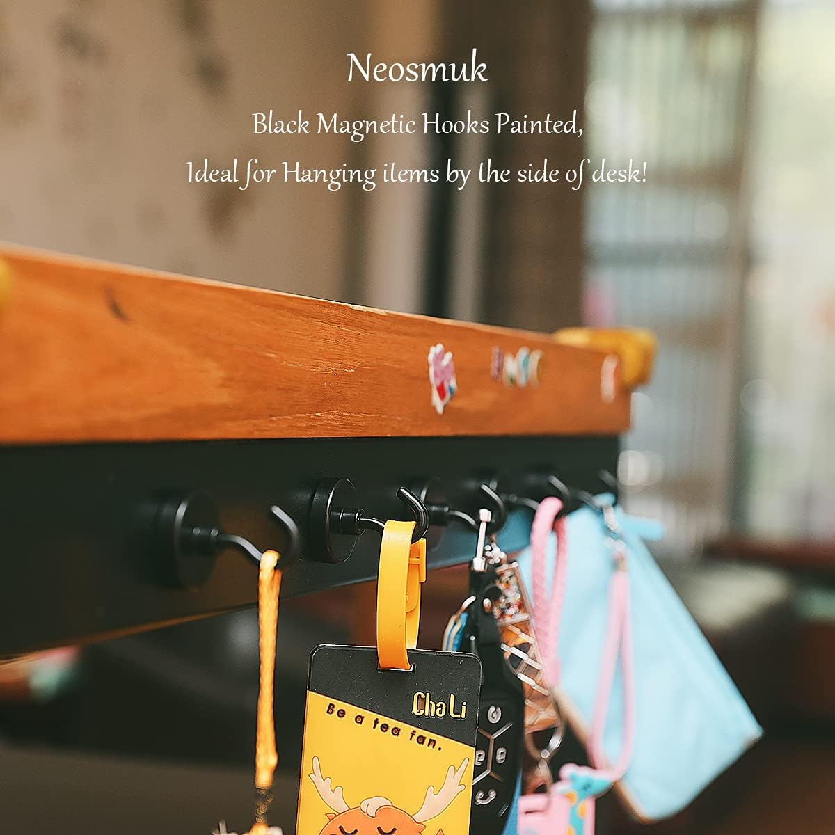 Neosmuk Black Magnetic Hooks Heavy Duty,Extra Strong Magnet with Metal Hook for Refrigerator, Super Magnet for Cruise,Grill, Kitchen,Classroom,Large Magnetic Hanger for Door,BBQ,Tools.
