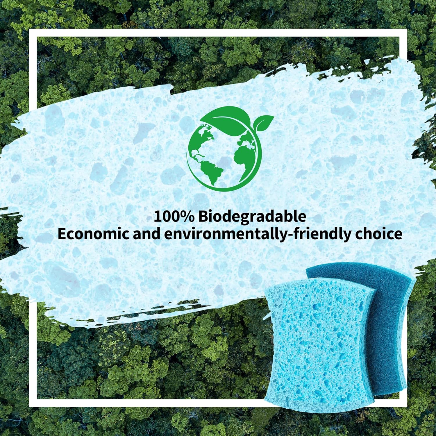 HOMERHYME Non-Scratch Cellulose Scrub Sponges 12 Pack, Sponges Kitchen with Double-Side & Ergonomic Design for Dishes, Coated Cookware, Sink & Countertops.