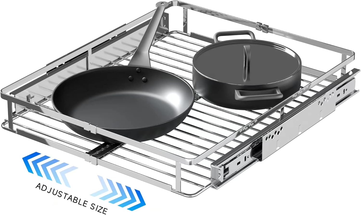- ✔【High Quality Material】The pull out drawers for kitchen cabinets is made of stainless steel, which can directly contact tableware and food, and is very safe, waterproof and rust proof; Stainless steel metal pull out drawers for kitchen cabinets is more durable and more supportive than ABS plastic basket; Simple and low-key colors can match with cabinets of various styles, suitable for a variety of family styles
