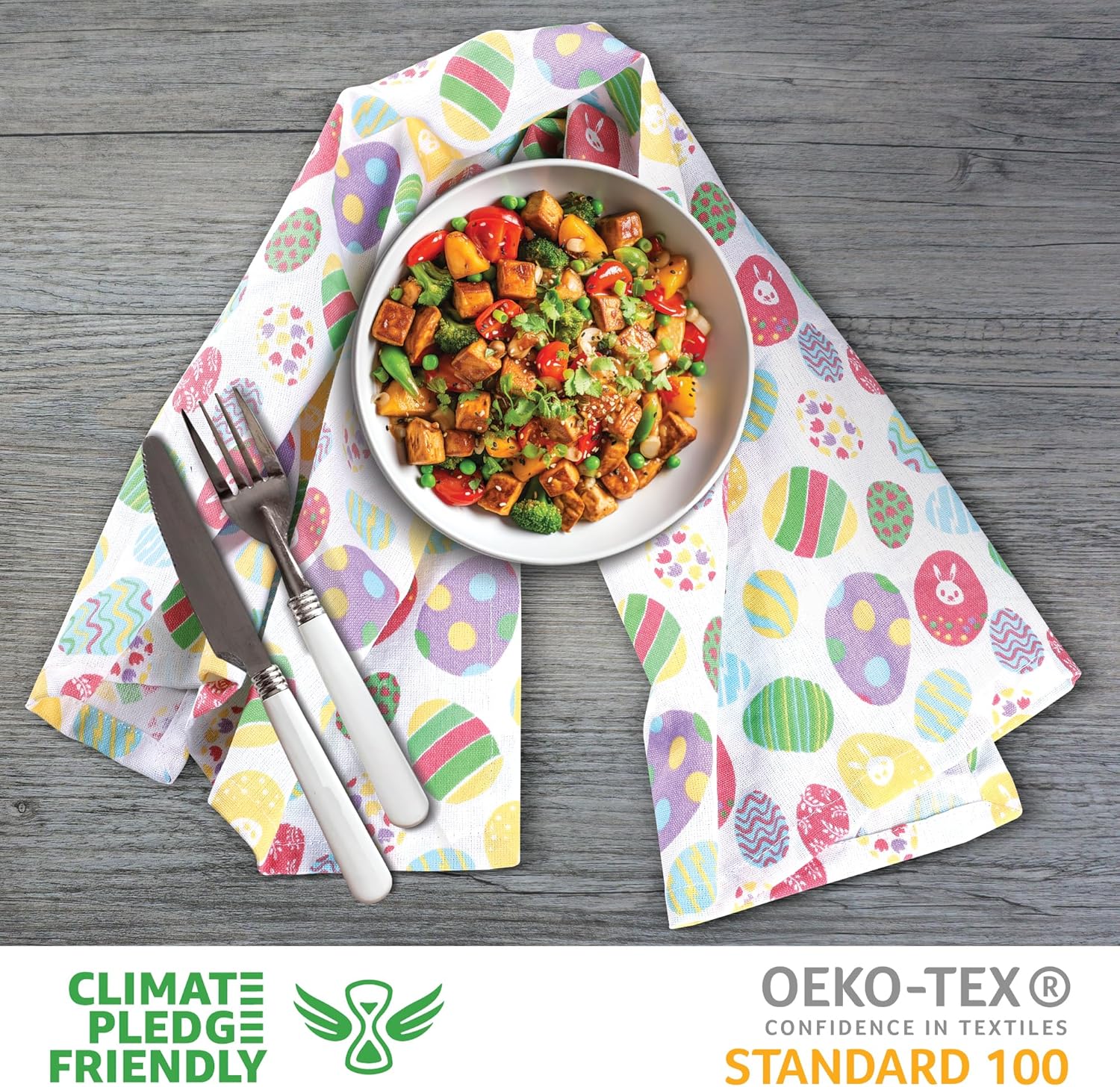 - MACHINE WASHABLE : Easy to maintain, these durable napkins and towels can be machine washed multiple times in cold water, without having their color fade.