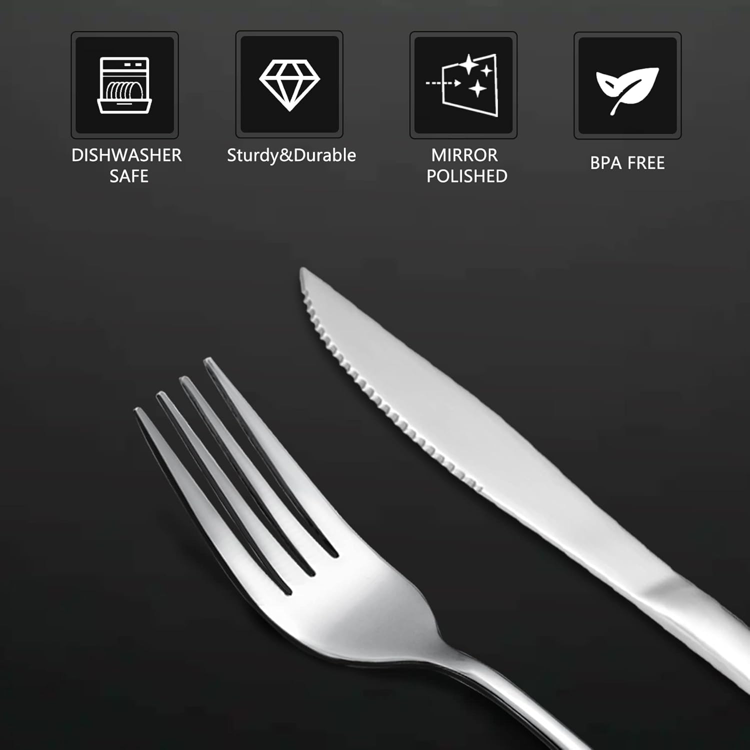 - High Quality : This flatware set is made of 18/10 stainless steel which is very durable, rust-proof, corrosion resistant, non-toxic, BPA free, no metal aftertaste. Meanwhile, mirror polish makes these modern silverware always keep shining.