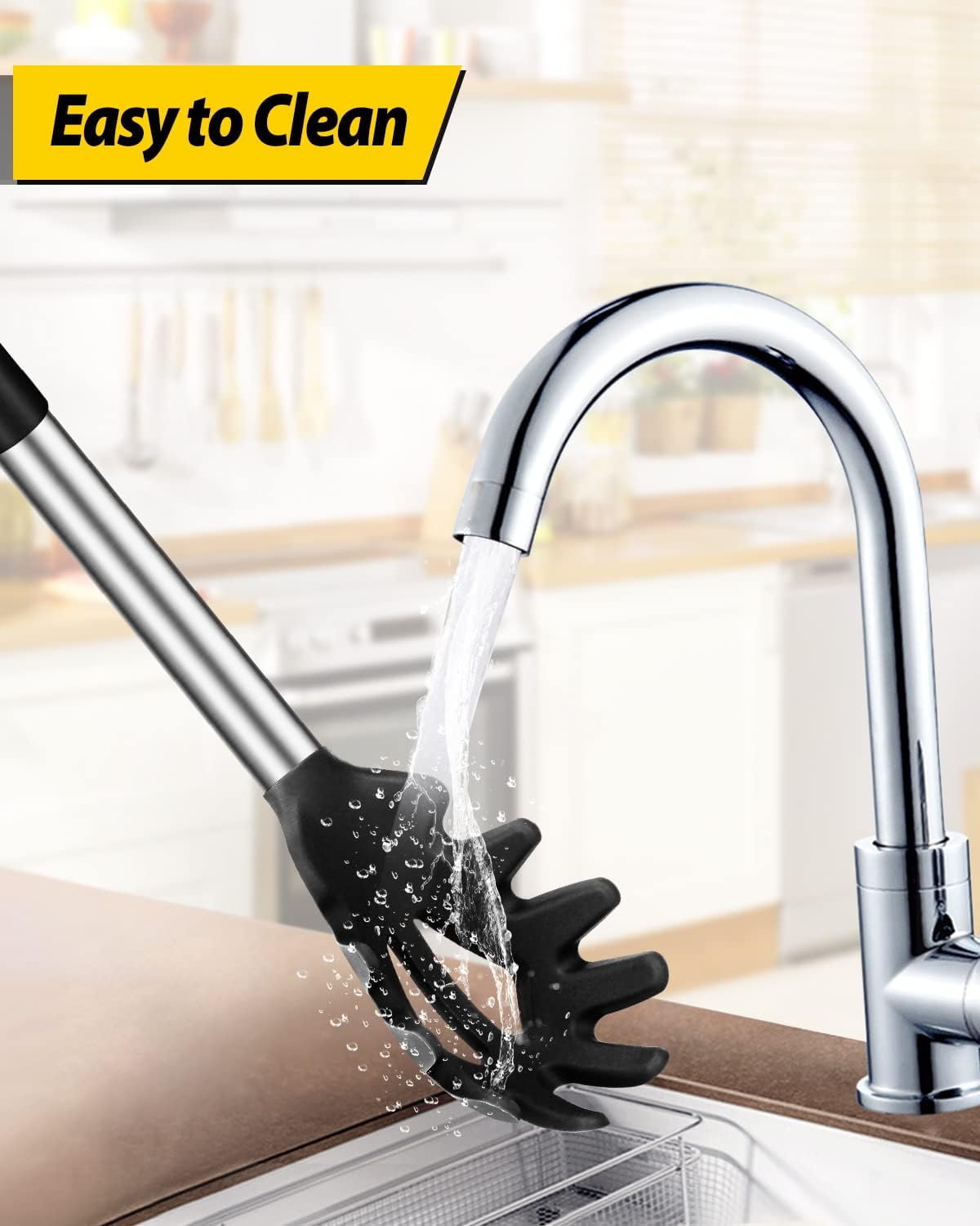 - Thoughtful Design : The good-quality 18/8 stainless steel keeps you away from the trouble of kitchen utensils rusting or breaking; This anti-scald silicone handle is not easy to conduct heat and is more comfortable to hold than traditional utensils