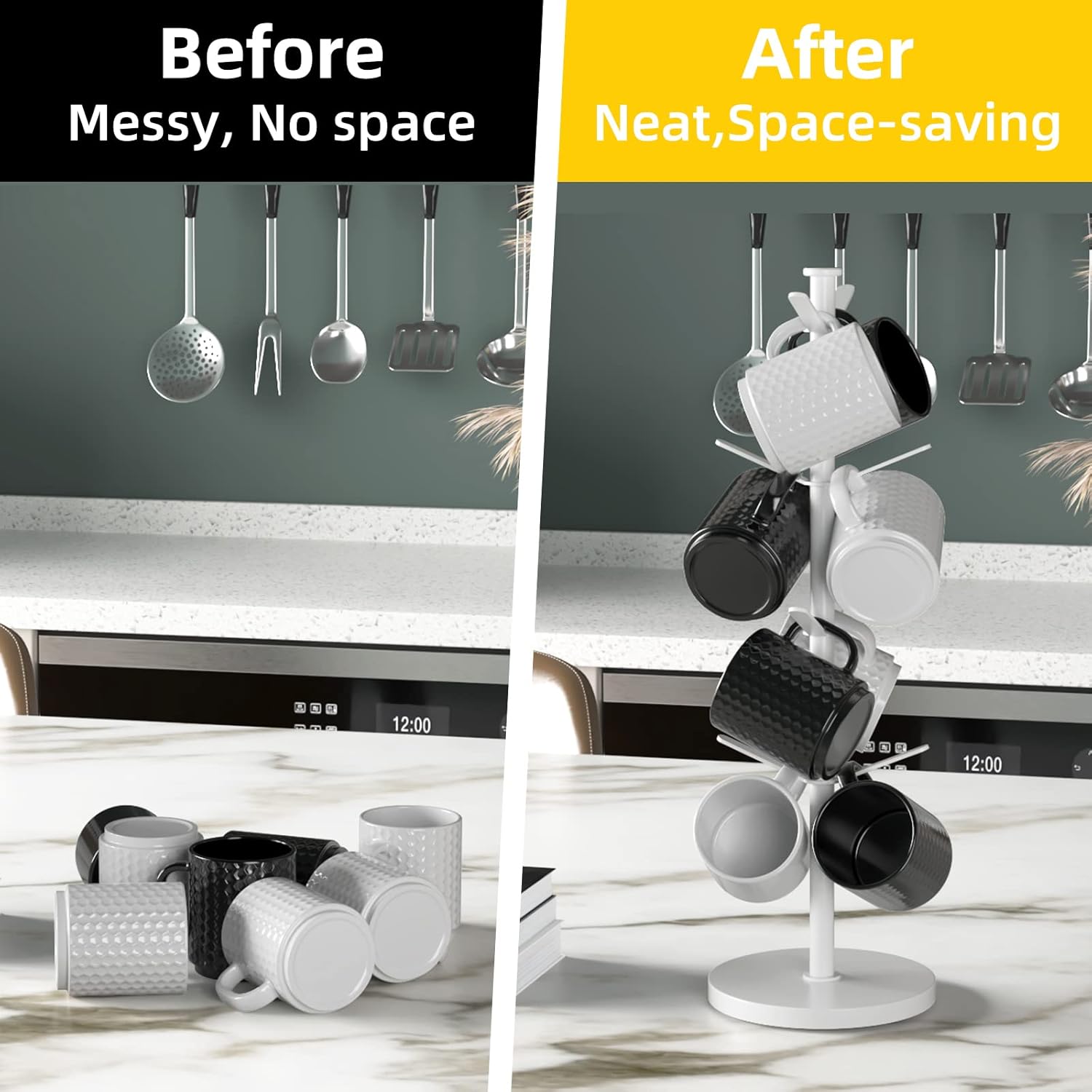 - 【DIY Marble Mug Holder Tree】 Up to 8 coffee cups, you can assemble the height/branches number you need,max load 8LB.