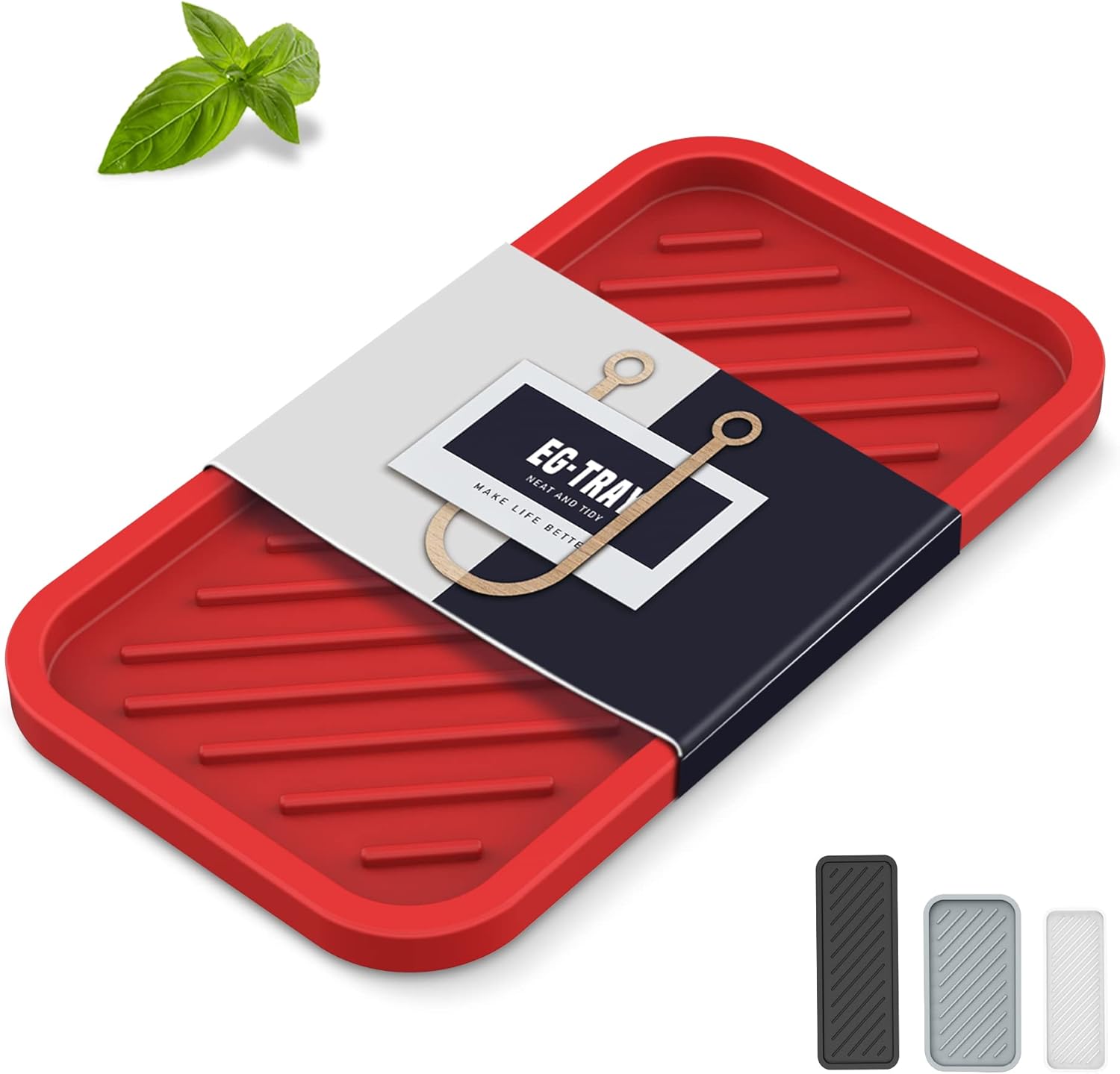 - 【Multiple Uses】Silicone tray is used in kitchen sink, bathroom countertop, living room, windowsill and other places, suitable for placing any suitable size items, such as water cups, soap dispensers, soap, cleaning cloths, small green plants, dishwashing sponges, Stainless Steel Sponges, etc. We have developed 3 sizes, 8 colors to choose from, if you buy the wrong size or don't like the color, please contact us and we will send you the product you need.